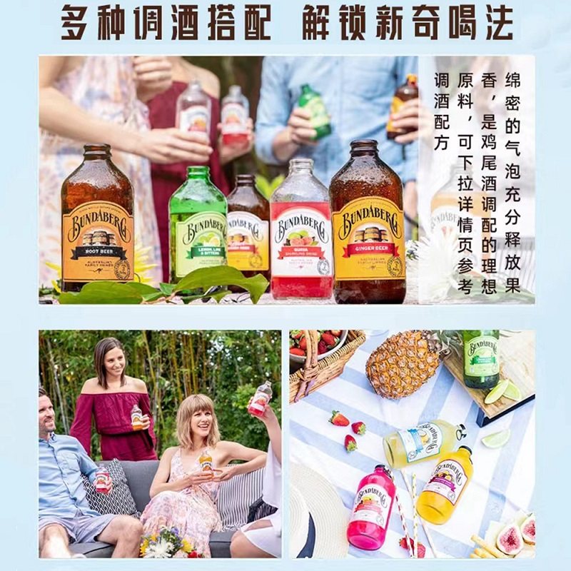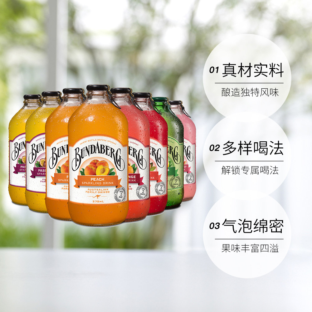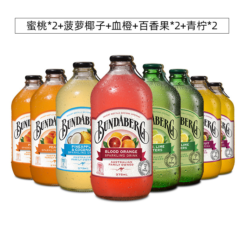 【自营】宾得宝Bundaberg果汁碳酸饮料进口气泡苏打水混装8瓶装