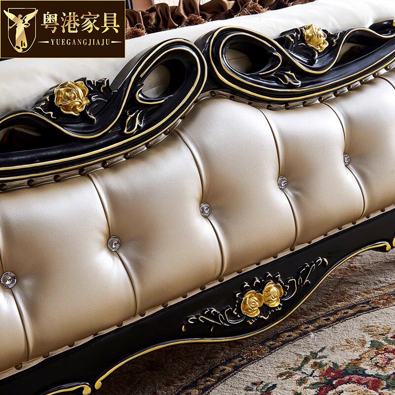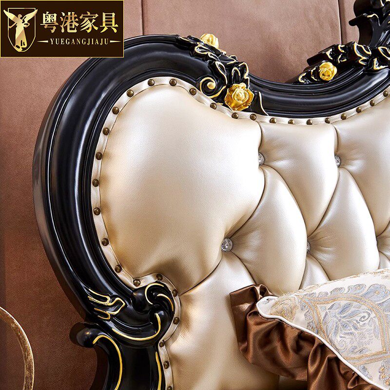 欧式真皮床1.8米双人床 美式别墅主卧美式实木雕花婚床奢华公主床