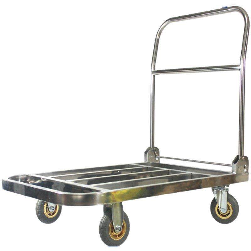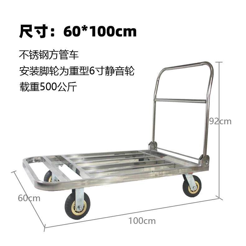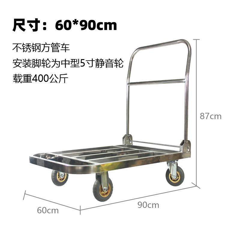 不锈钢方管手推车拉货车搬运车小推车折叠小拖车静音小四轮平板车