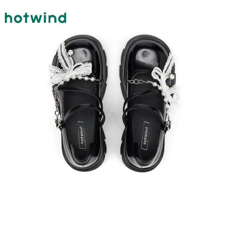 热风粗跟玛丽珍鞋女2025年秋季新款蝴蝶结蕾丝小皮鞋高跟百搭鞋子