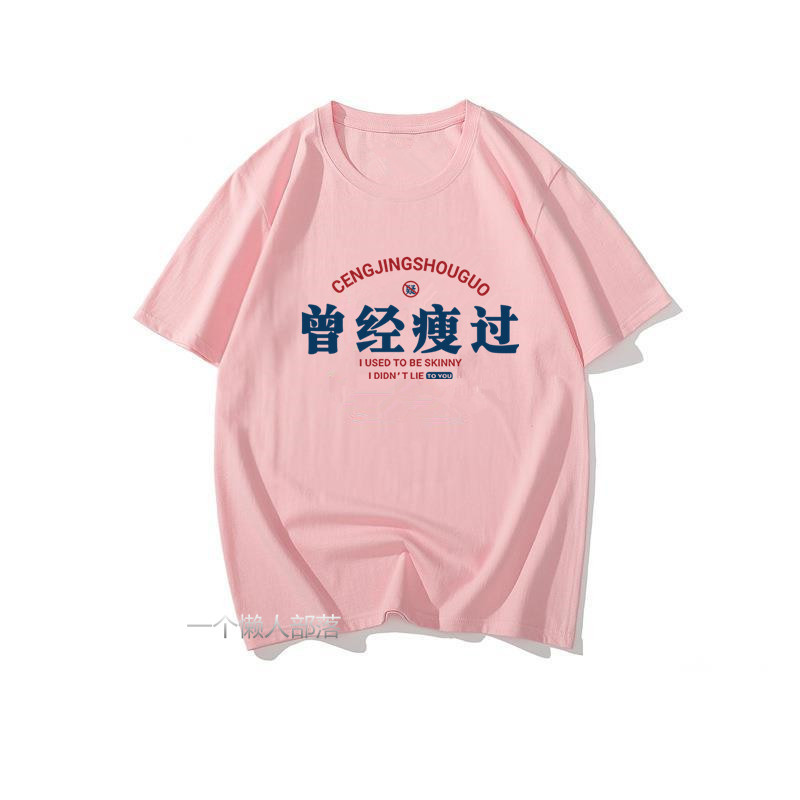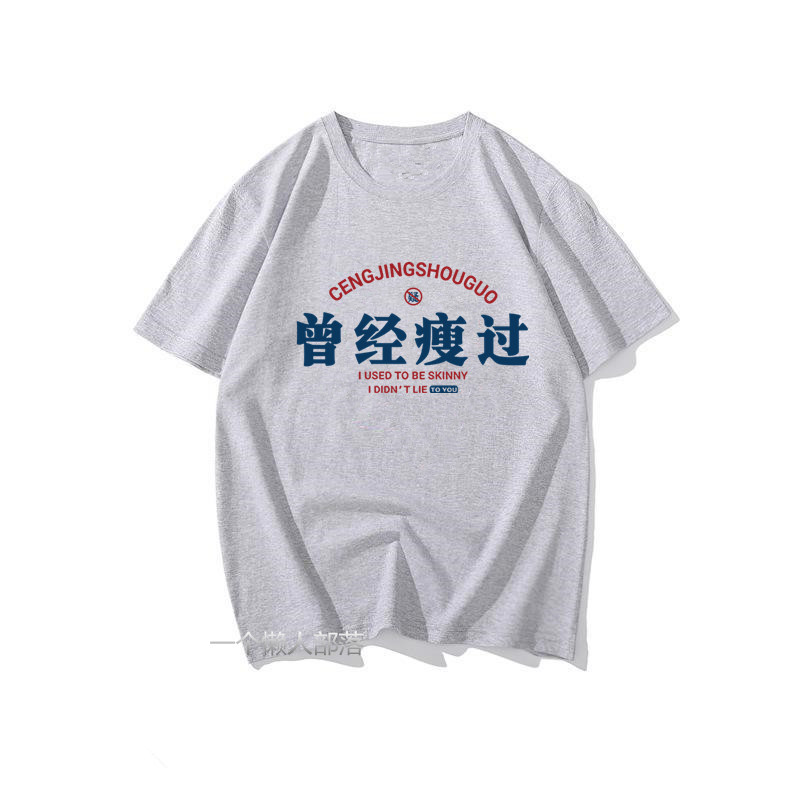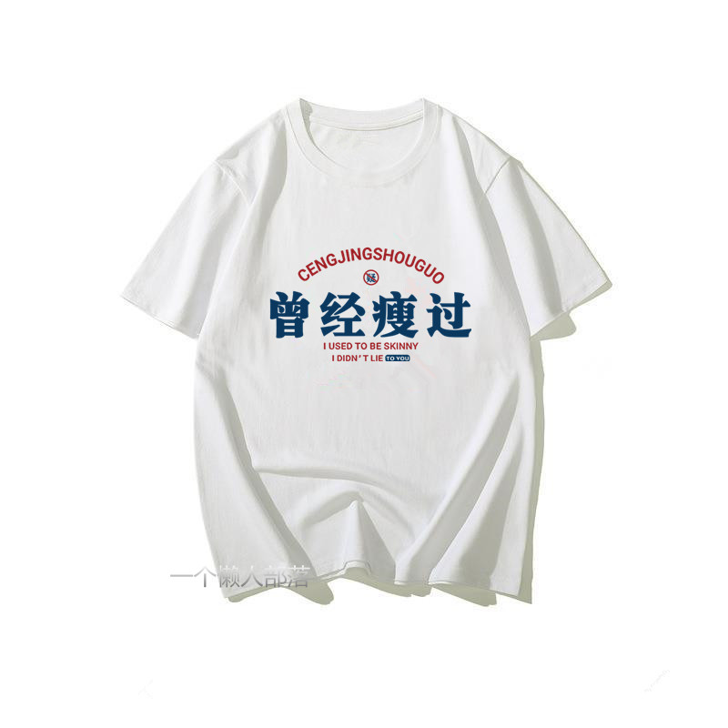 国潮复古怀旧7080年代创意印花曾经瘦过宽松圆领短袖T恤男夏体恤