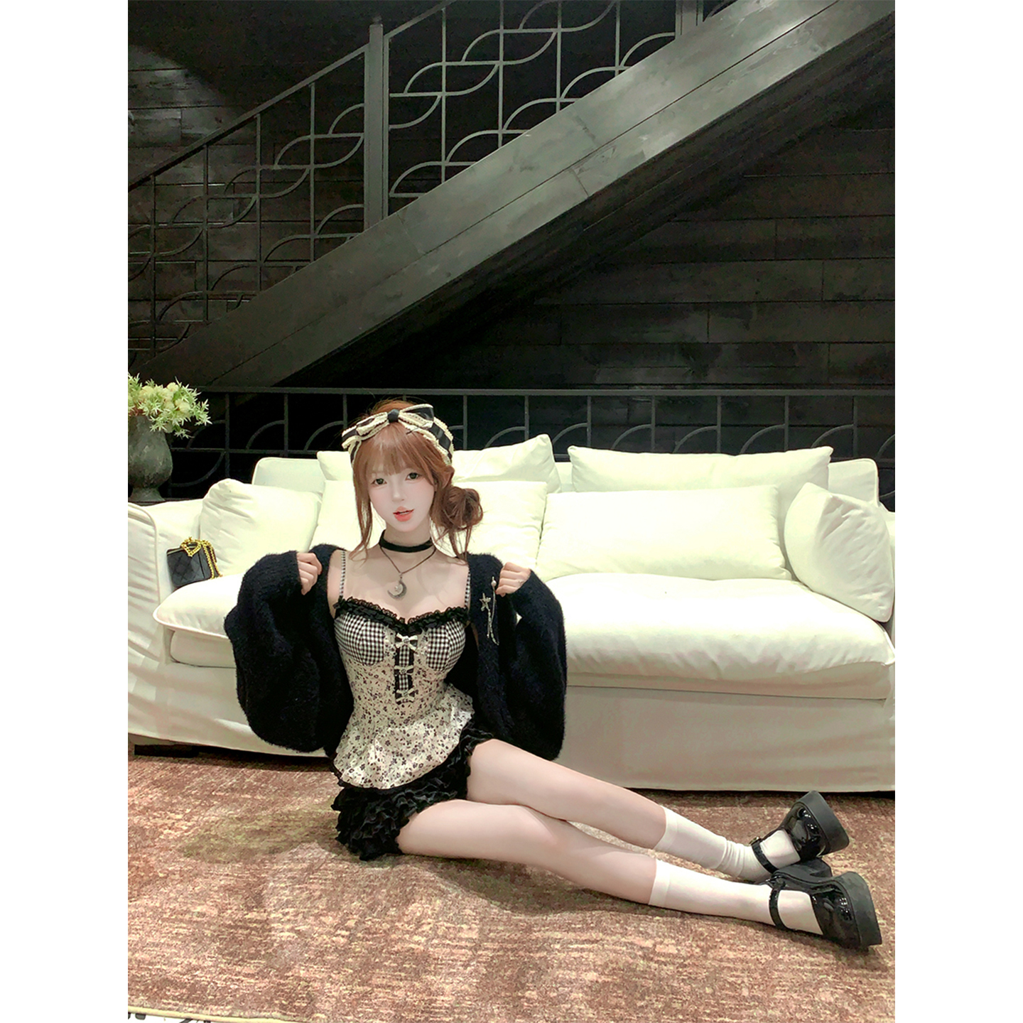【瑞茜】黑糖酒心 秋冬纯欲风小众设计背心短裙毛衣 R2380-1L