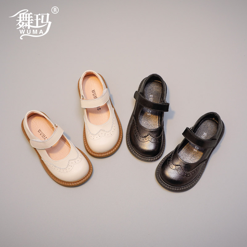 女童鞋儿童小皮鞋2025新款春秋款宝宝英伦风春季圆头真皮单鞋黑色