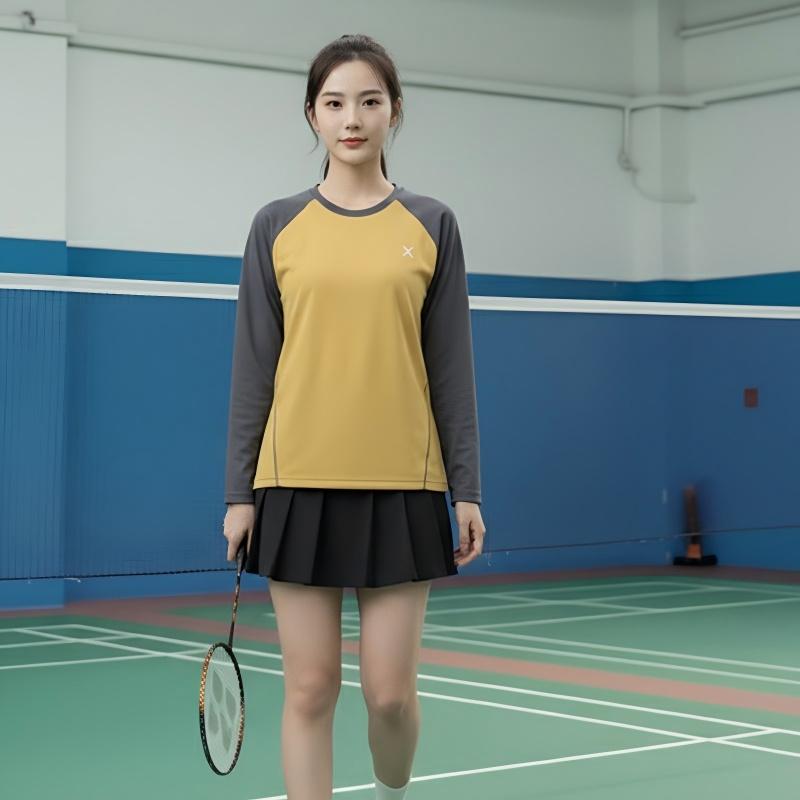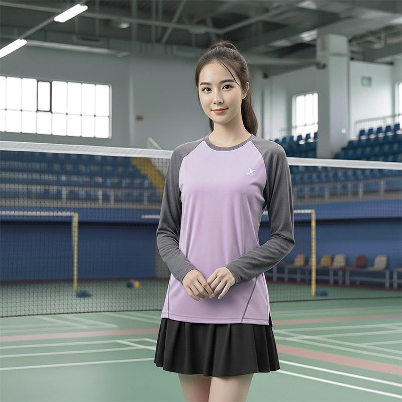 超好看羽毛球服女2025新款学生上衣撞色运动圆领长袖T恤羽毛球服
