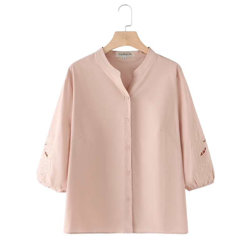 特大码七分袖纯棉衬衫女夏季新款中老年胖妈妈装高档绣花开衫上衣