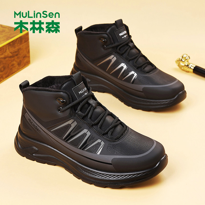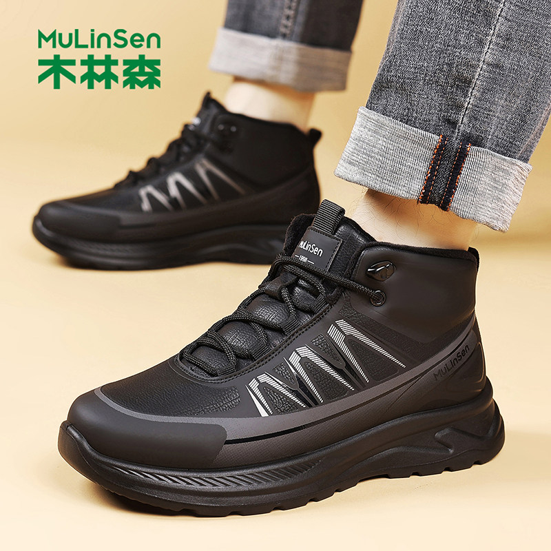 木林森男鞋2025冬季新款中高帮潮流时尚百搭加棉保暖加厚男士棉鞋