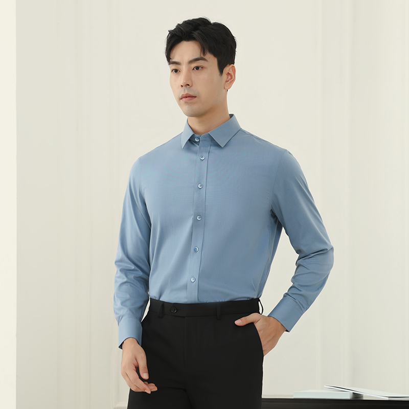 乔治白2025秋冬季衬衫男款长袖商务正装纯色百搭通勤尖领休闲透气