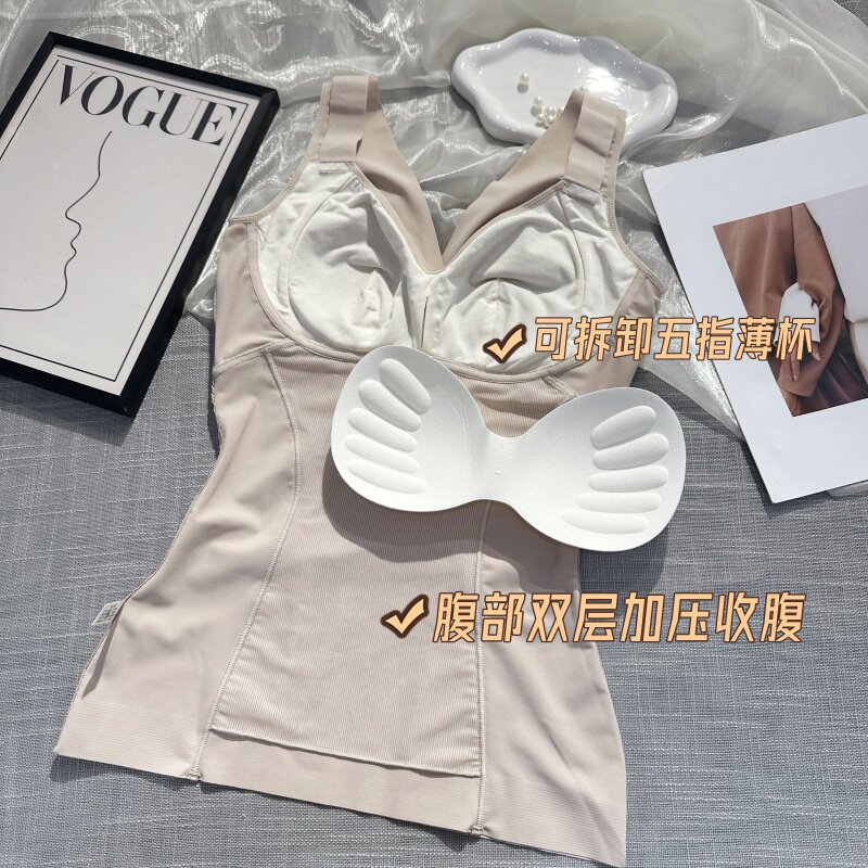 强压美体塑身衣春秋薄款收腹束腰文胸背心一体内衣女束身上衣显瘦