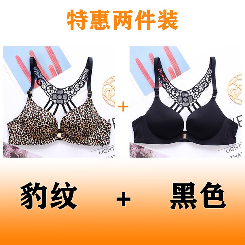 性感前扣文胸美背内衣女薄豹纹小胸聚拢厚上托无钢圈少女胸罩新款