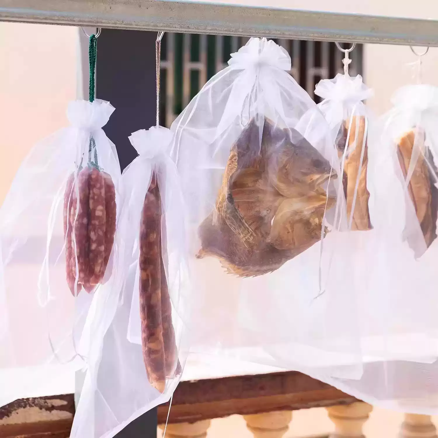 腊肉香肠网袋防苍蝇晾晒网袋抽线无纺布食品用腊鸭火腿鱼干透气防