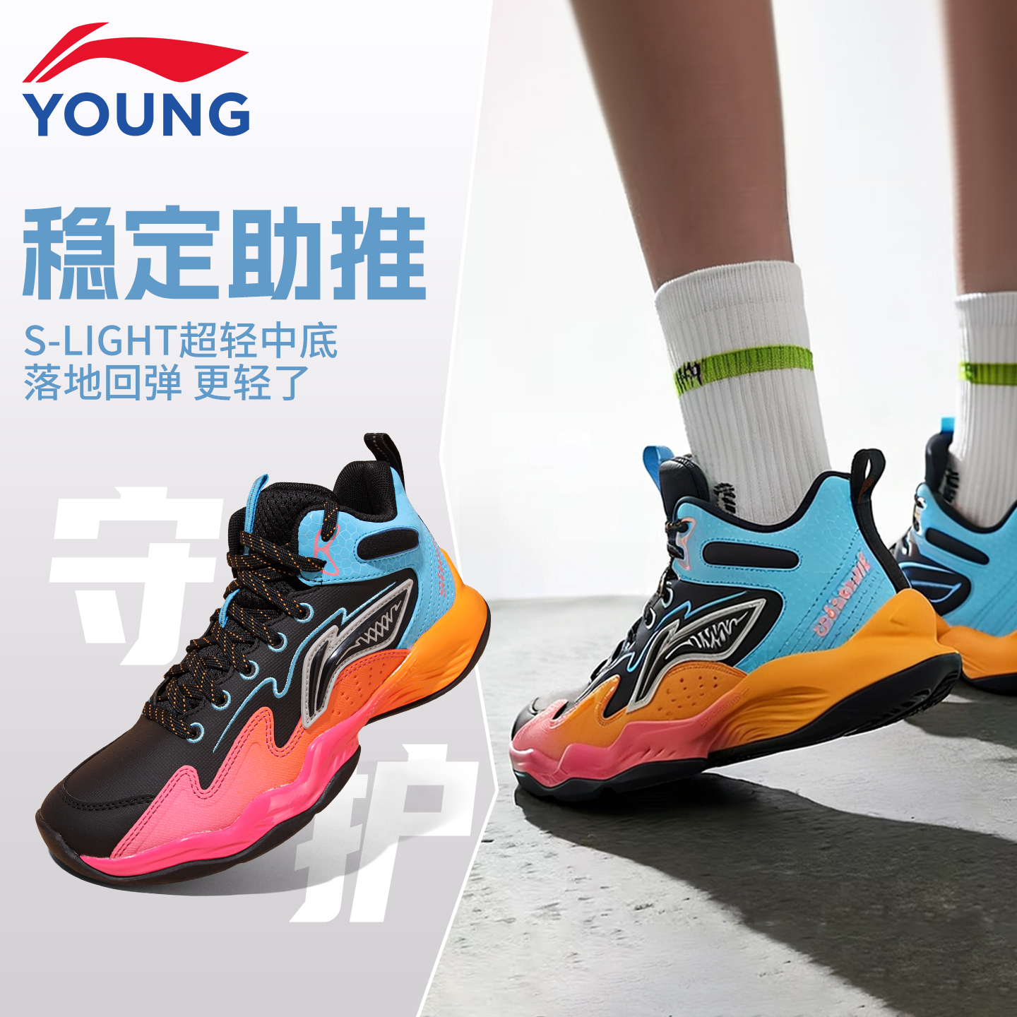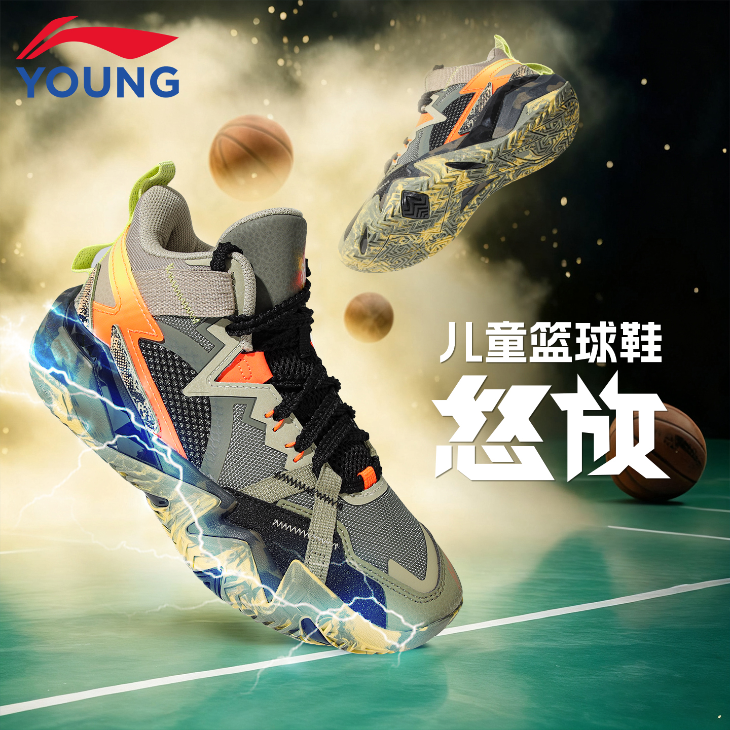 李宁儿童网面透气篮球鞋