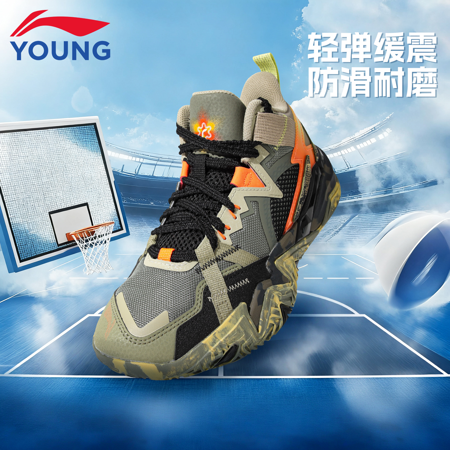 李宁童鞋儿童男童专业篮球鞋网面青少年专业防滑减震透气运动鞋子