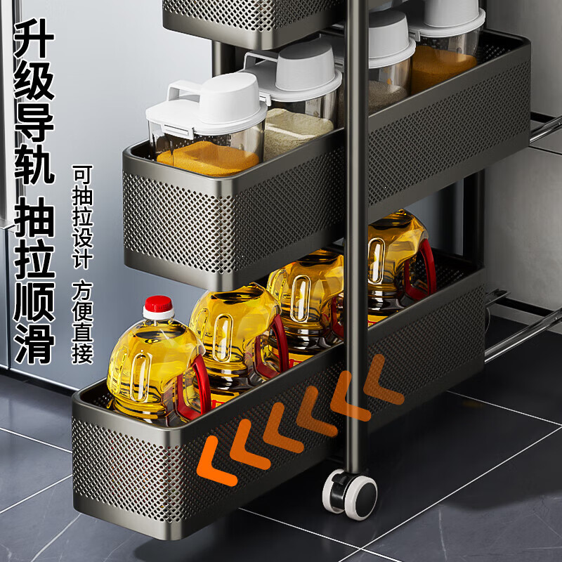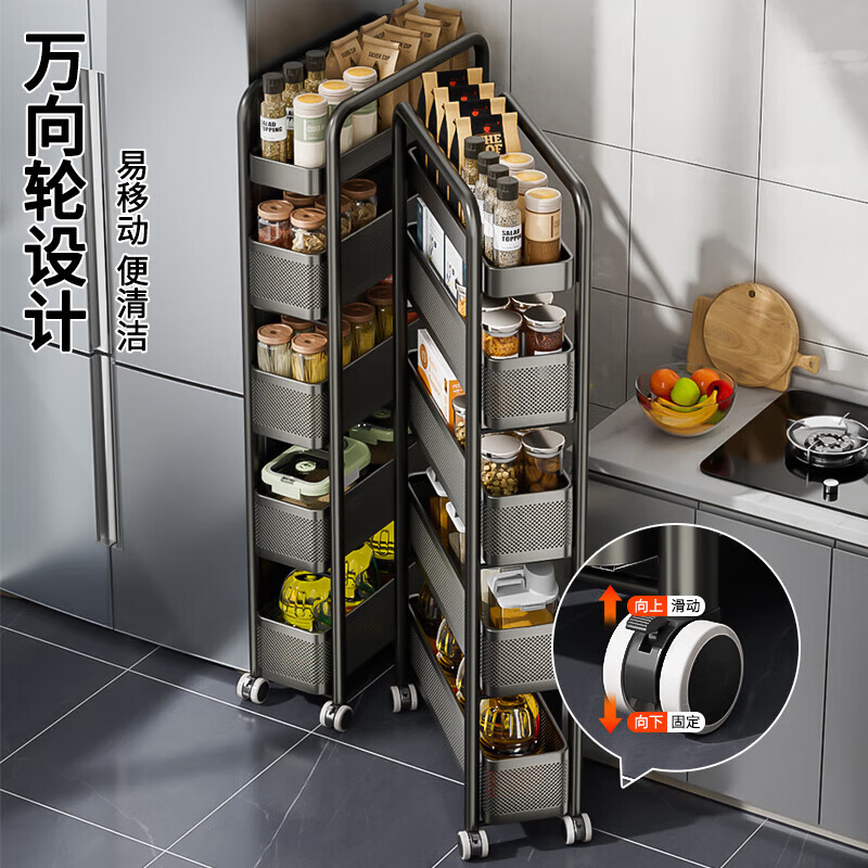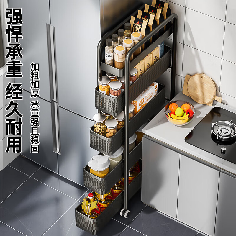 汉御轩厨房置物架落地冰箱夹缝浴室多层推车卫生间抽拉收纳储物柜