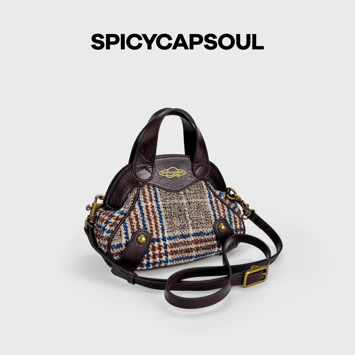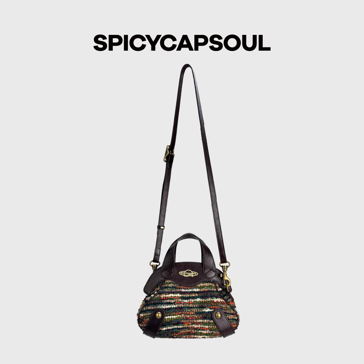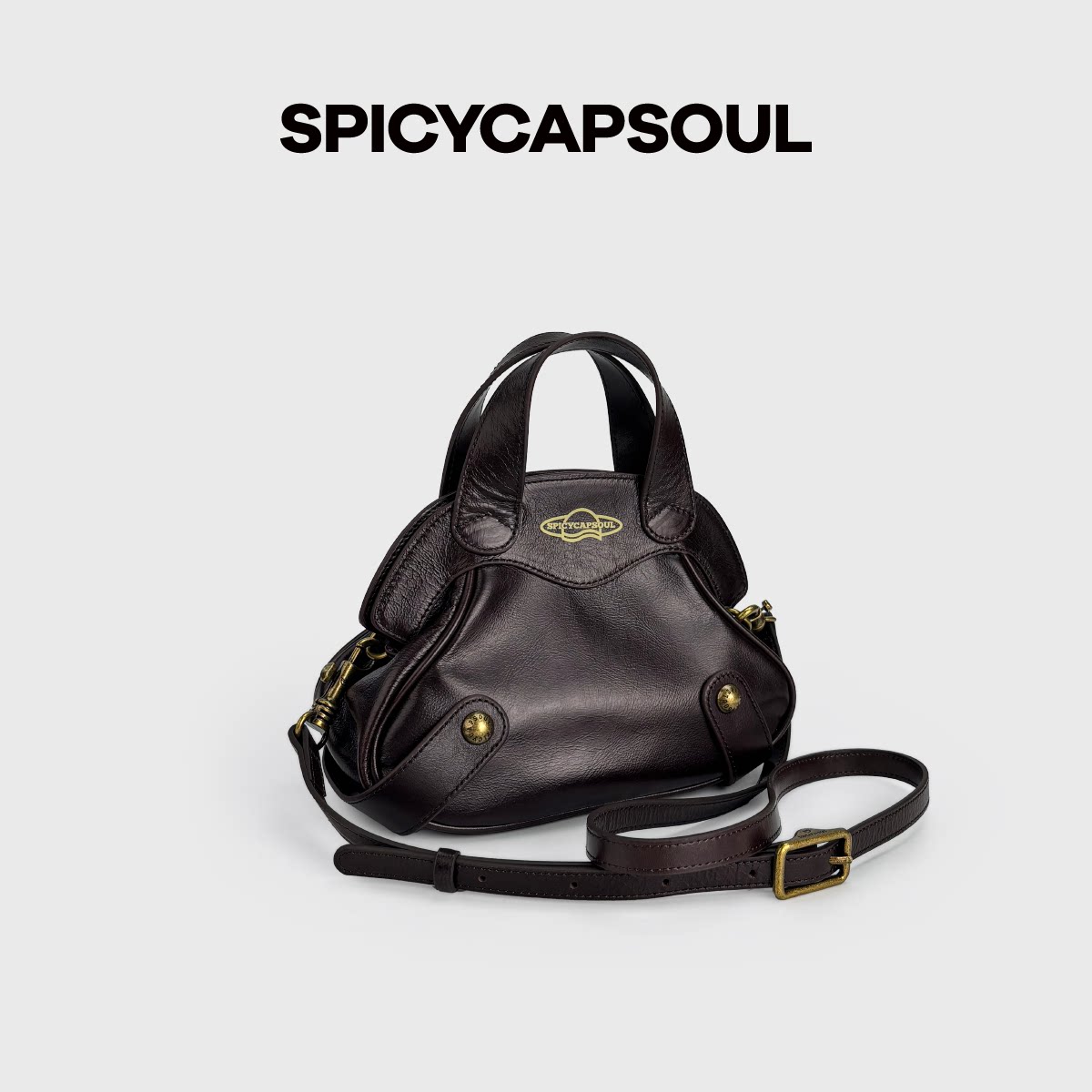 【中古小夹子】SpicyCapSoul头层牛皮设计单肩斜挎包夹子口金包