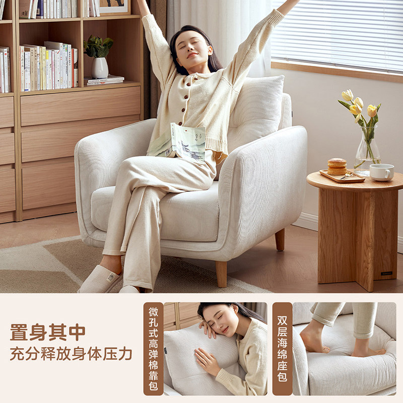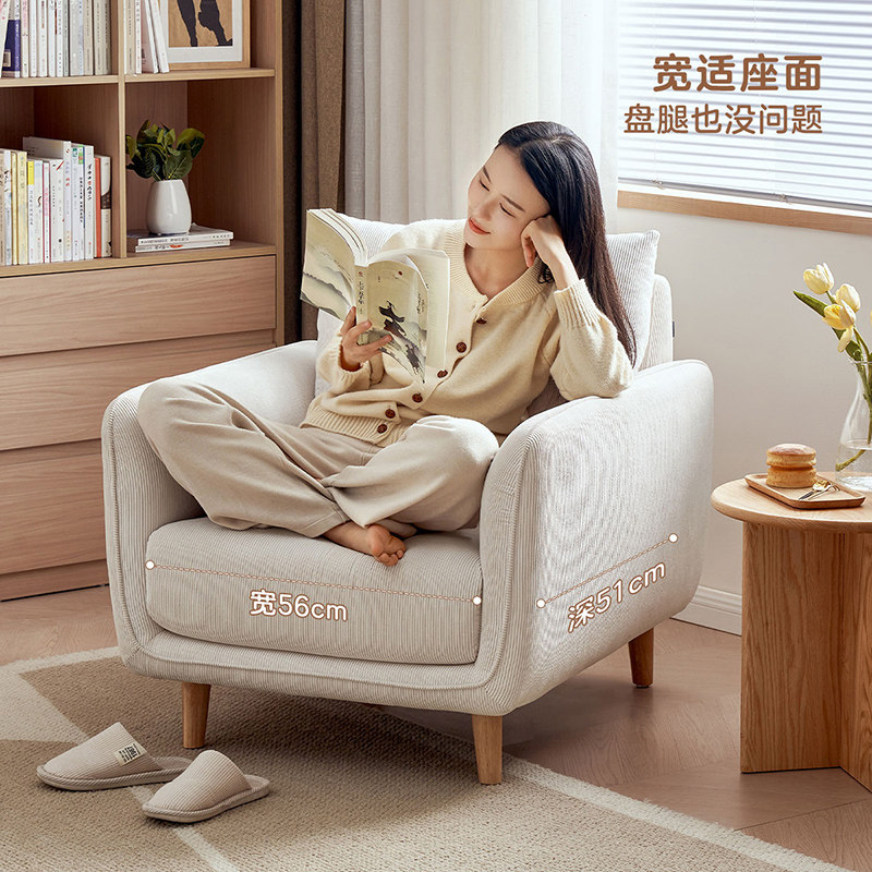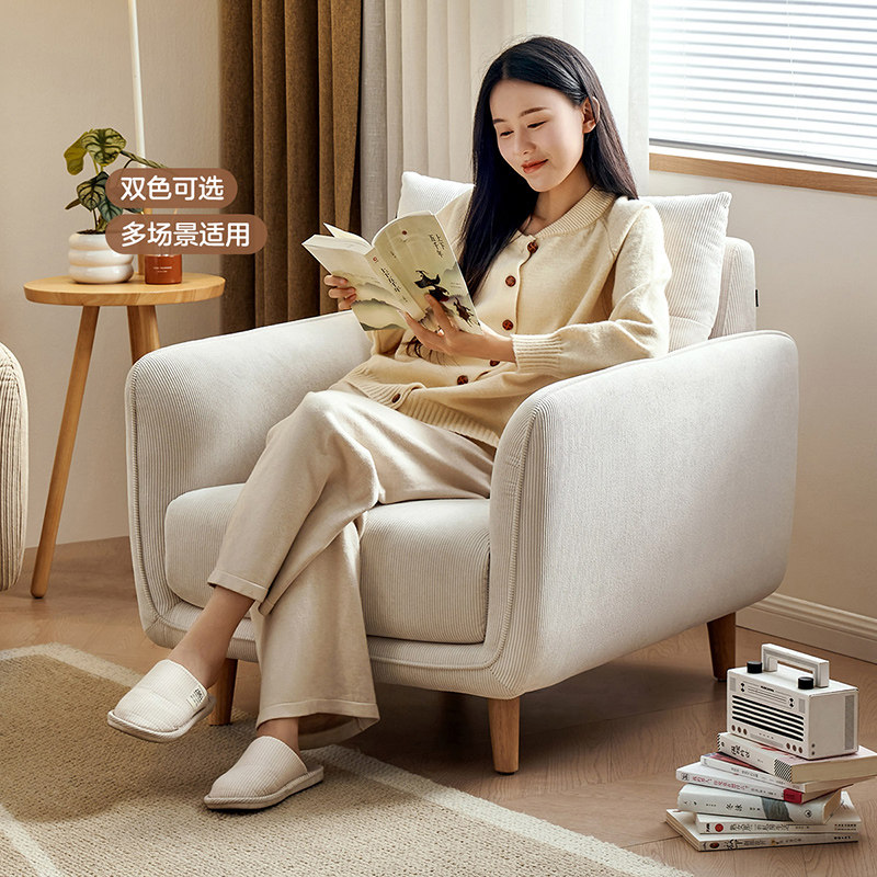 全友家居现代简约实木脚布艺沙发椅阳台小型单人沙发客厅2025新款