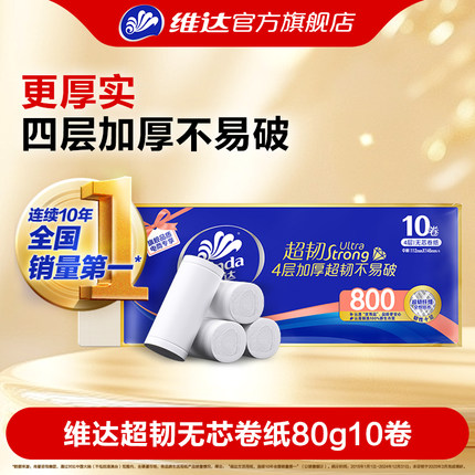 维达超韧无芯卷纸单提10卷4层80g家用卫生厕纸卷筒纸卫生纸巾
