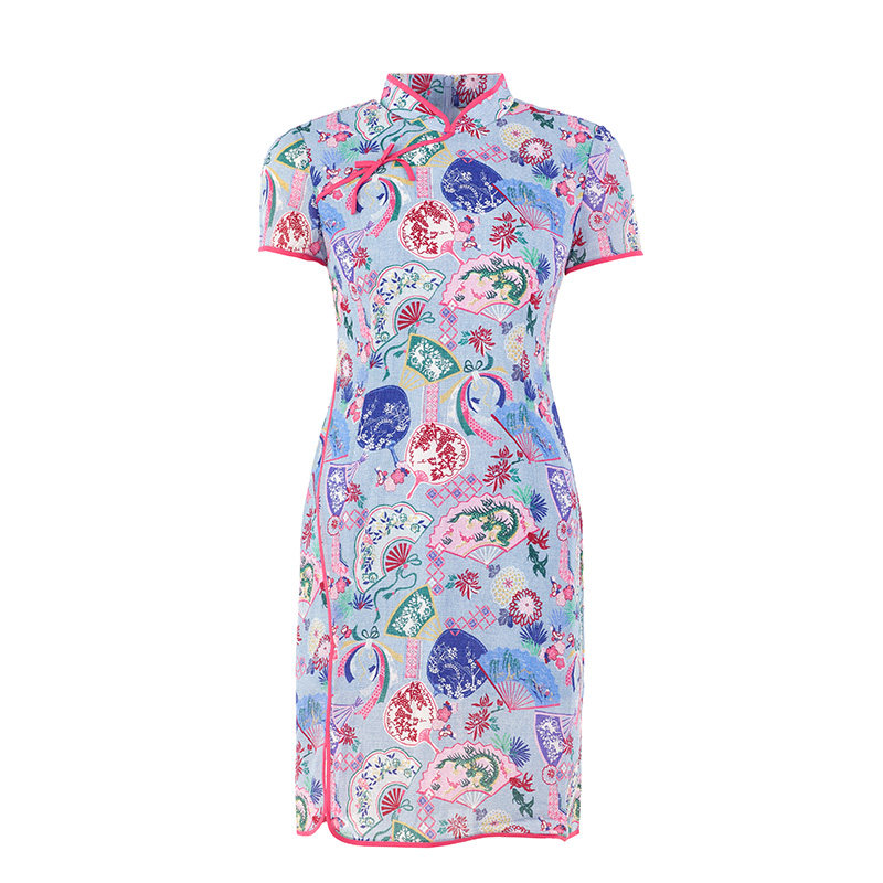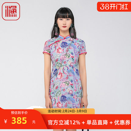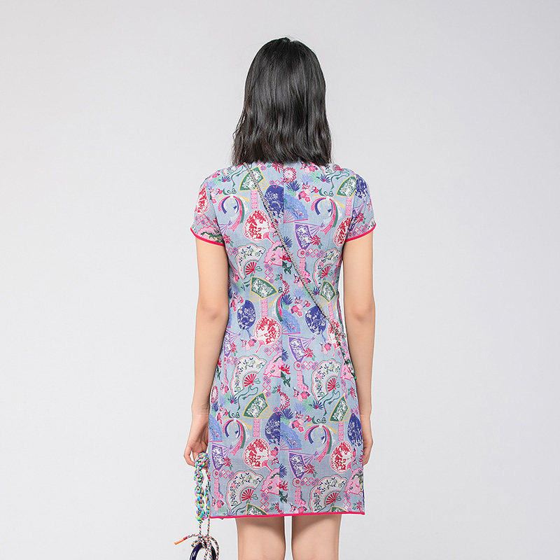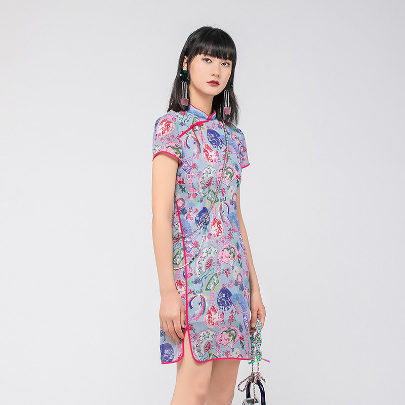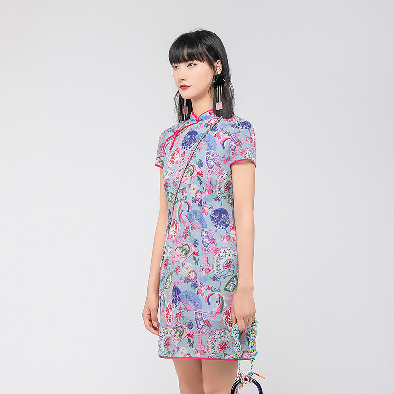 渔牌女装连衣裙女夏季2024新款真丝弹力古典优雅改良旗袍FGGB0068
