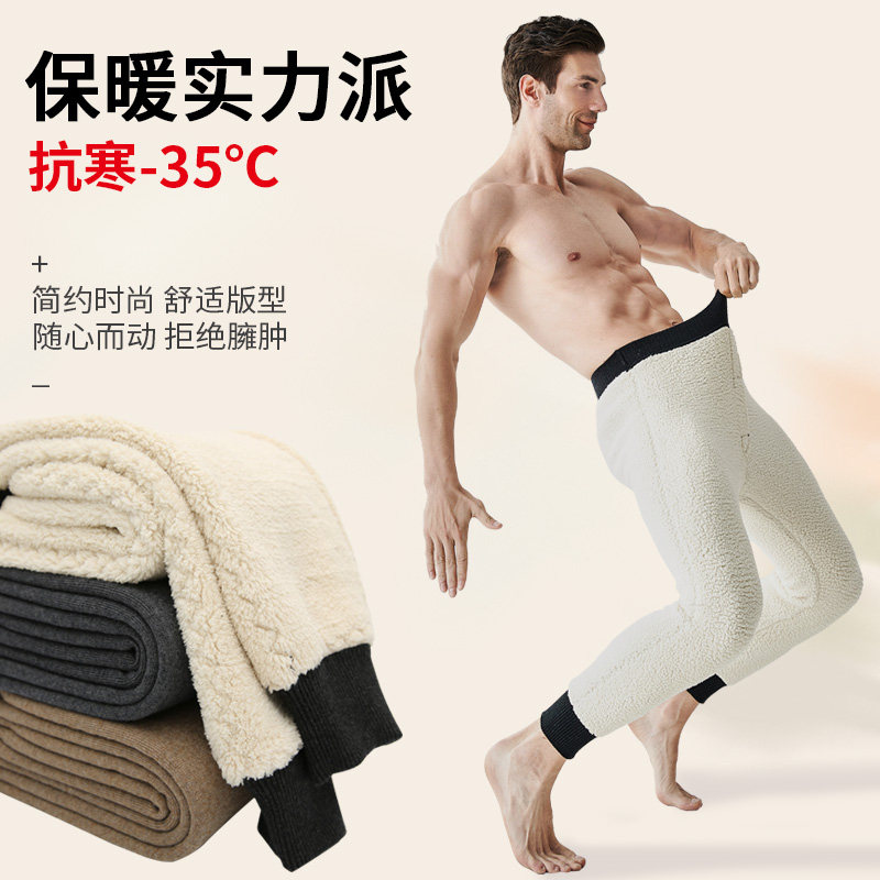 纯羊绒裤男羊羔绒保暖裤羊毛裤女
