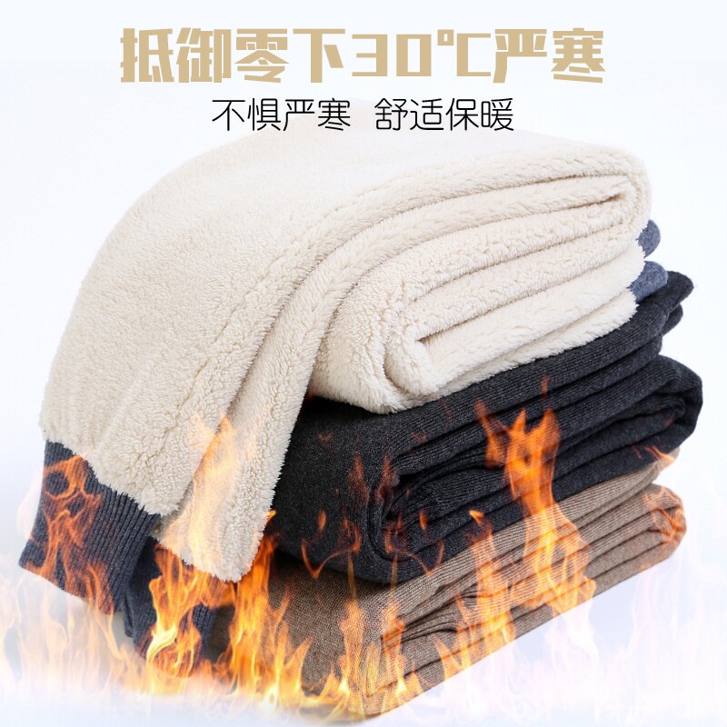 鄂尔多斯市羊绒裤男加绒超厚羊羔绒裤子保暖裤女士羊毛裤老人棉裤