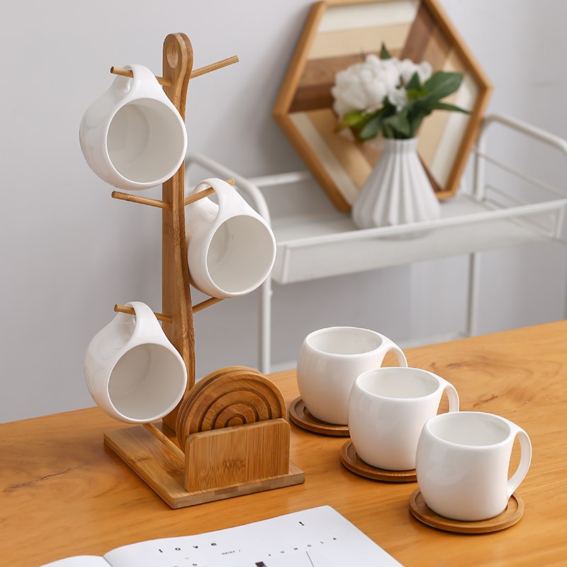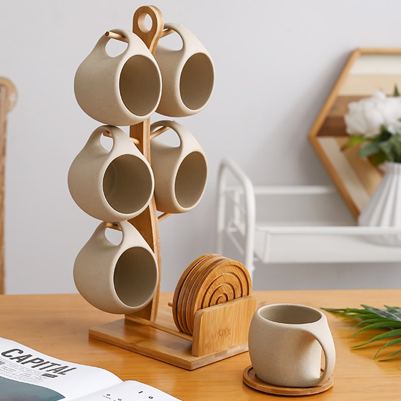 陶瓷水杯家用套装待客喝水杯子复古咖啡L杯碟简约粗陶杯架马克杯