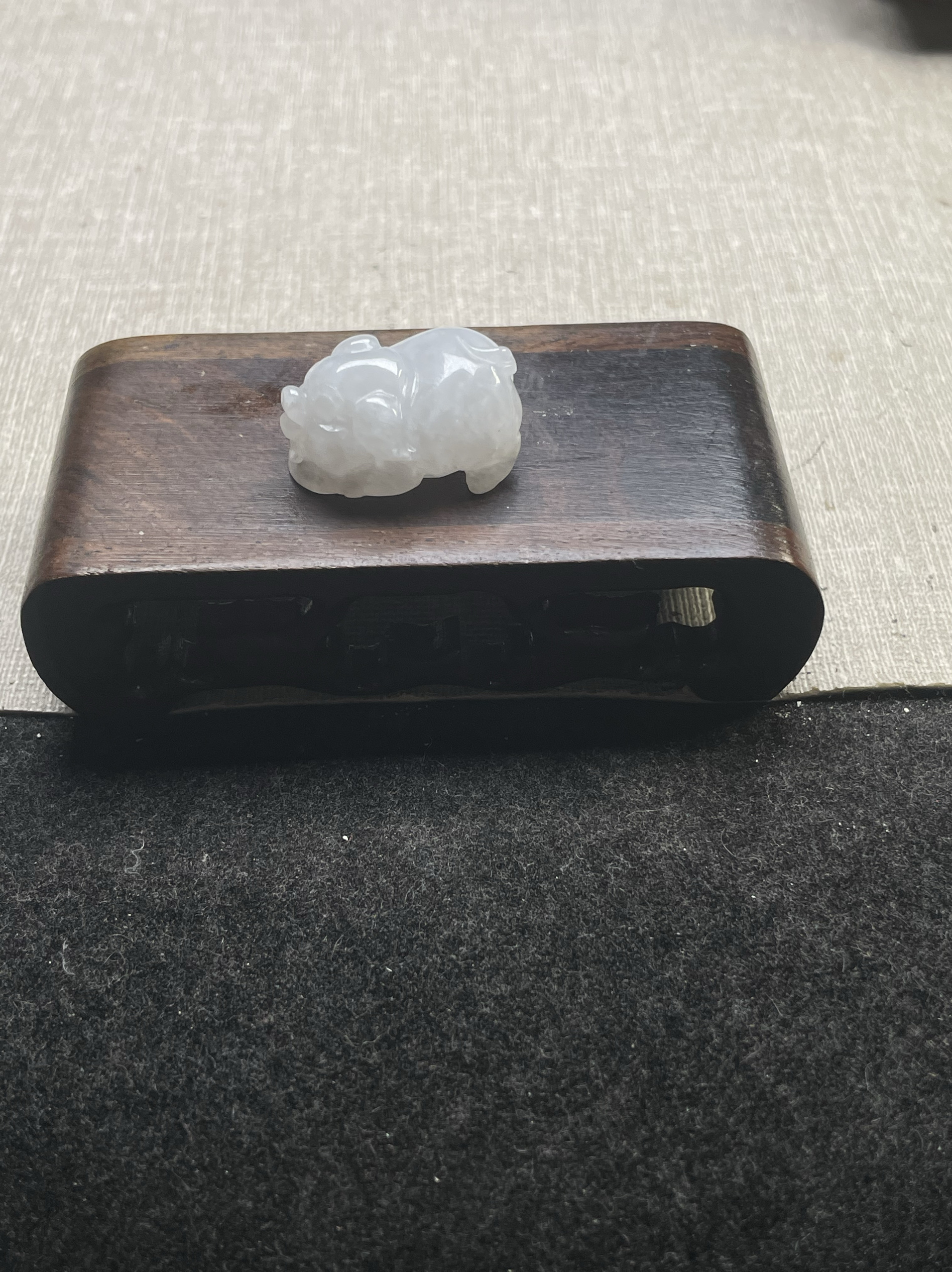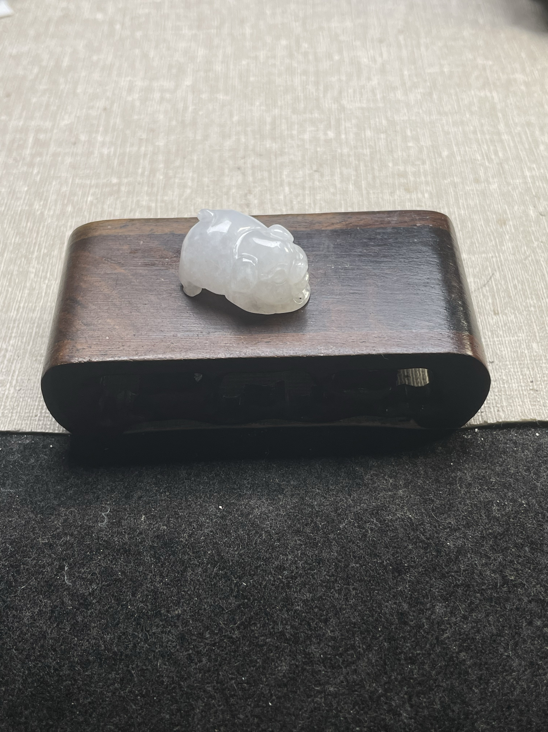 隆慈缘原矿翡翠源头直发A货翡翠冰白冰种生肖猪小吊坠玉猪吊坠