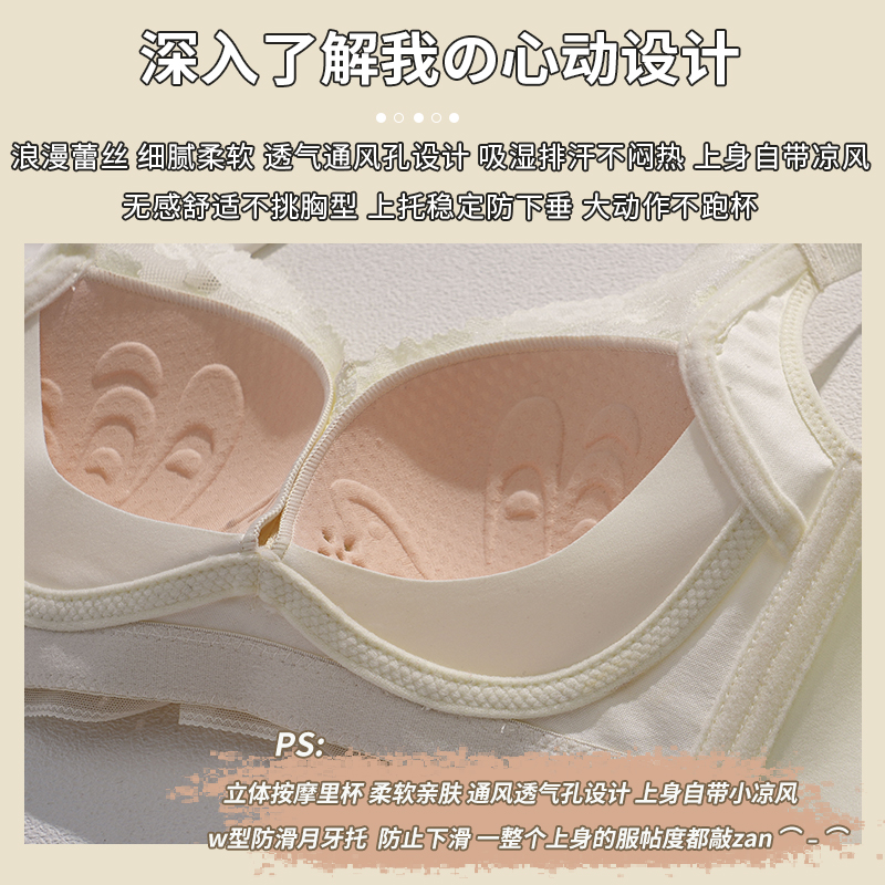 内衣女夏季薄款小胸聚拢上托收副乳防下垂女士透气蕾丝调整型文胸