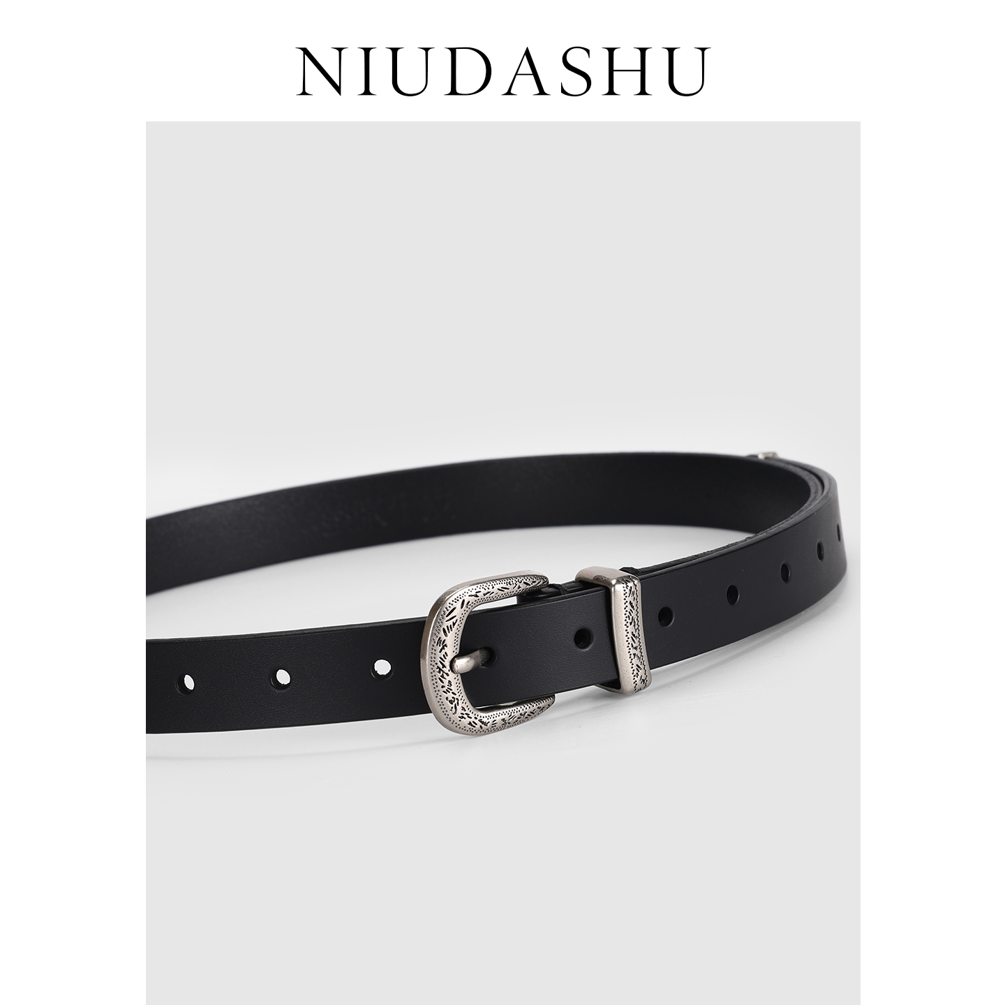 皮带男女同款真皮装饰简约百搭复古小众设计感配牛仔裤腰带女显瘦