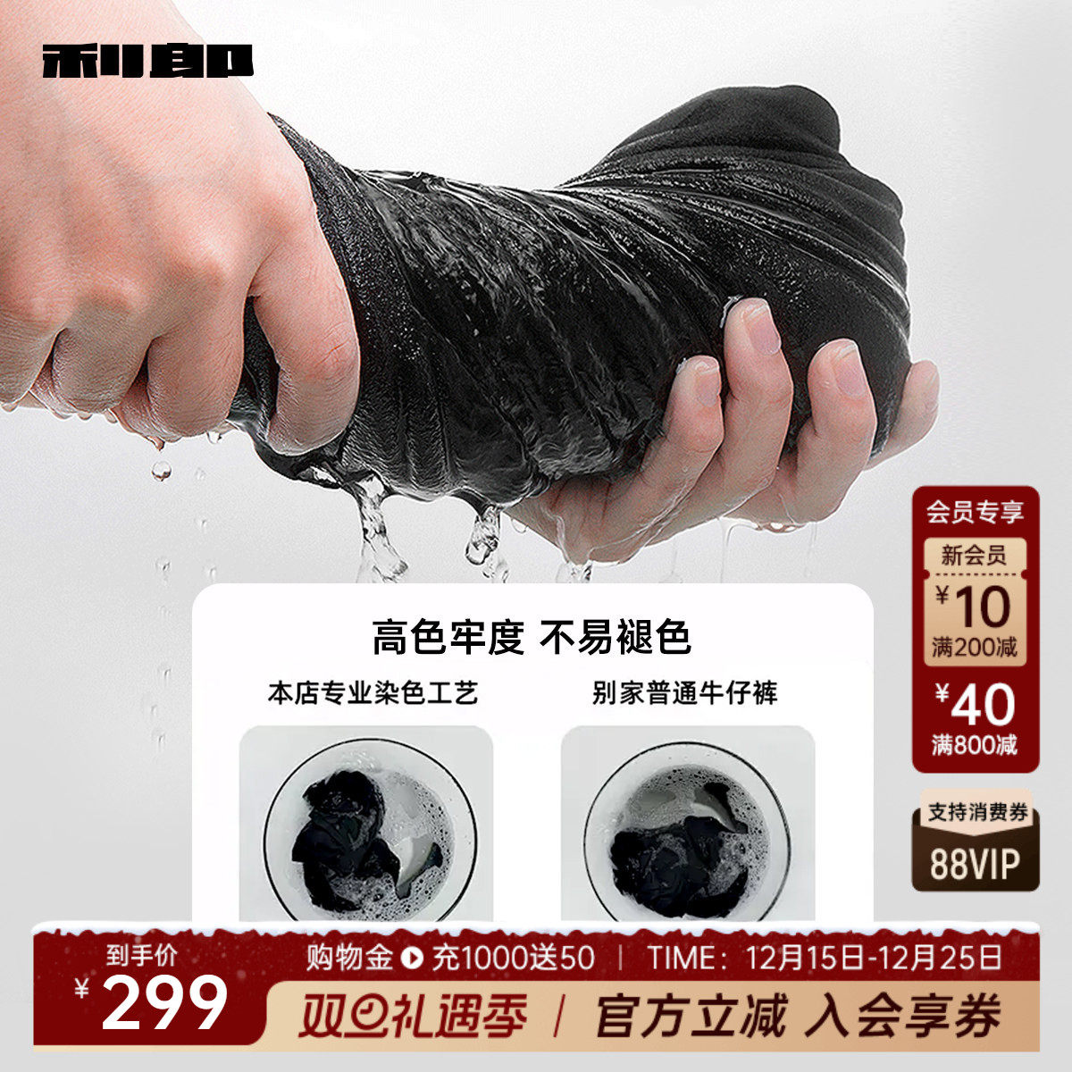 四面弹力科技黑利郎官方牛仔裤