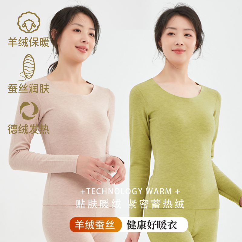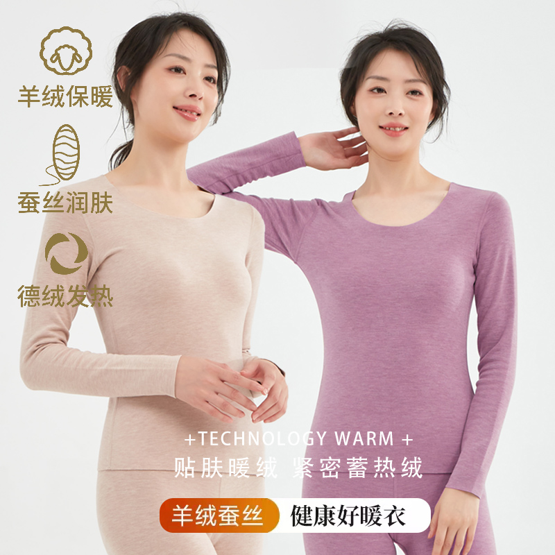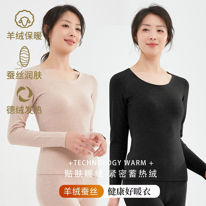 德绒保暖内衣女学生加绒加厚套装女生无痕打底纯棉毛衫冬秋衣秋裤