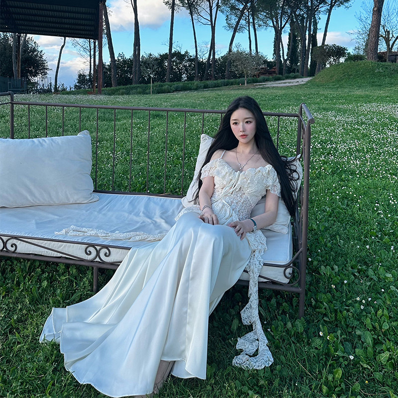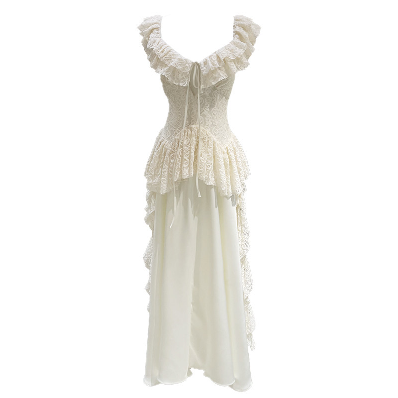 bear熊熊屋【唐顿庄园】可做轻婚纱求婚礼服蕾丝荷叶边缎面连衣裙