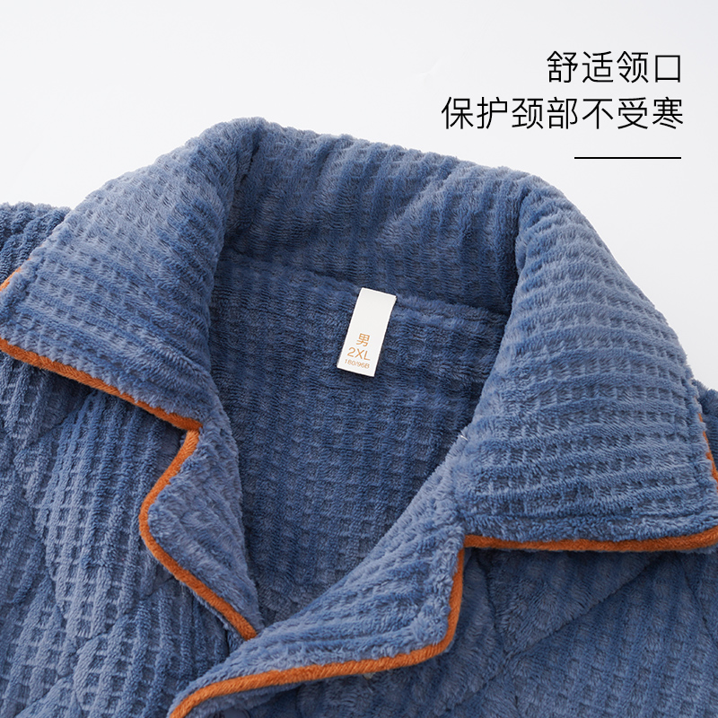睡衣男秋冬季三层夹棉袄加绒加厚保暖珊瑚绒两件套装可外穿家居服