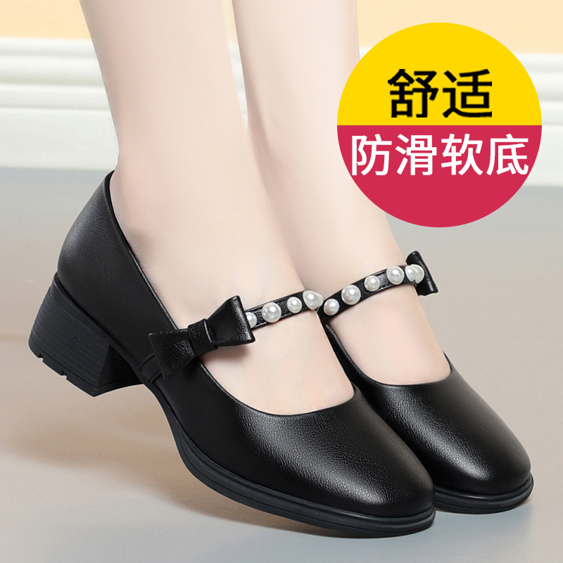 妈妈鞋软底软面2025年春新款真皮中年春秋女士一字扣休闲百搭单鞋