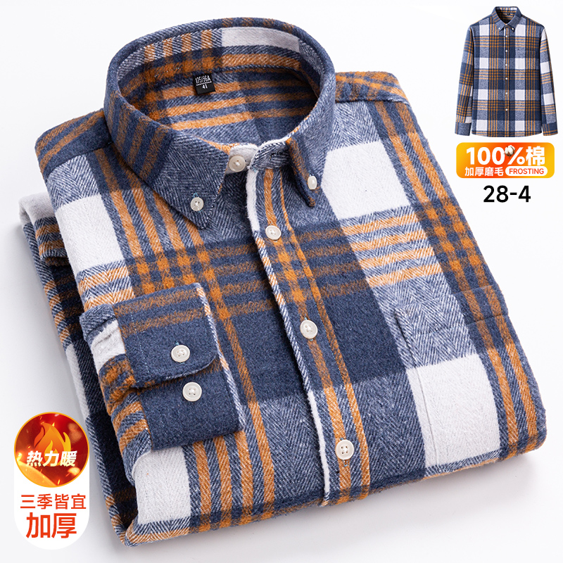 保罗长袖纯棉磨毛格子衬衫衬衣