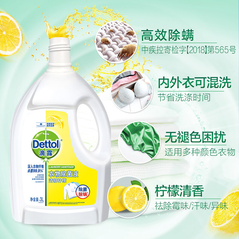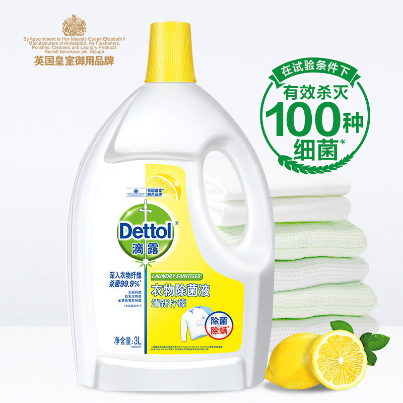 滴露衣物除菌液3L柠檬香 内衣衣服洗衣消毒液除菌杀菌家用洗衣机