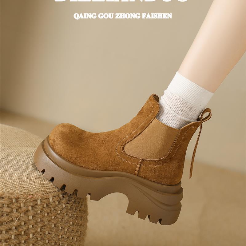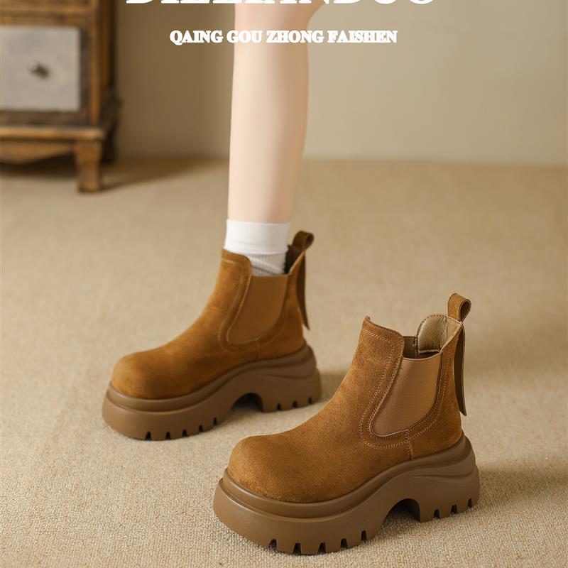厚底马丁靴女款2025新款冬季爆款超火小短靴加绒棕色美拉德大黄靴
