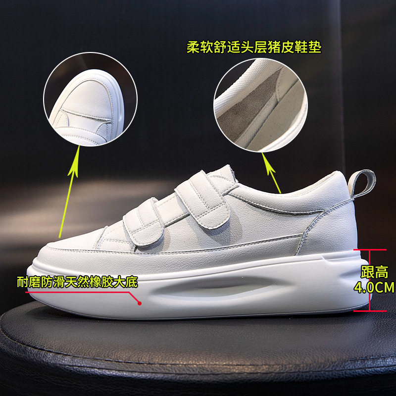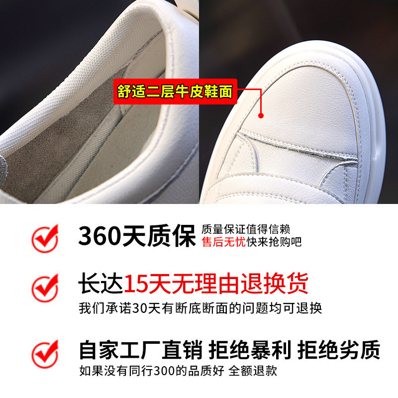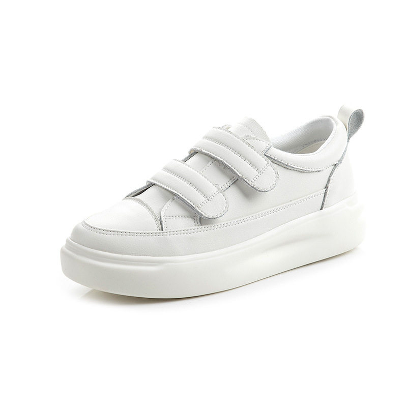 小白鞋女春季2026新款女士百搭厚底真皮女鞋魔术贴休闲平底鞋单鞋