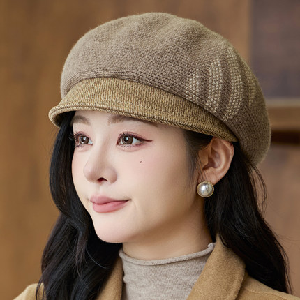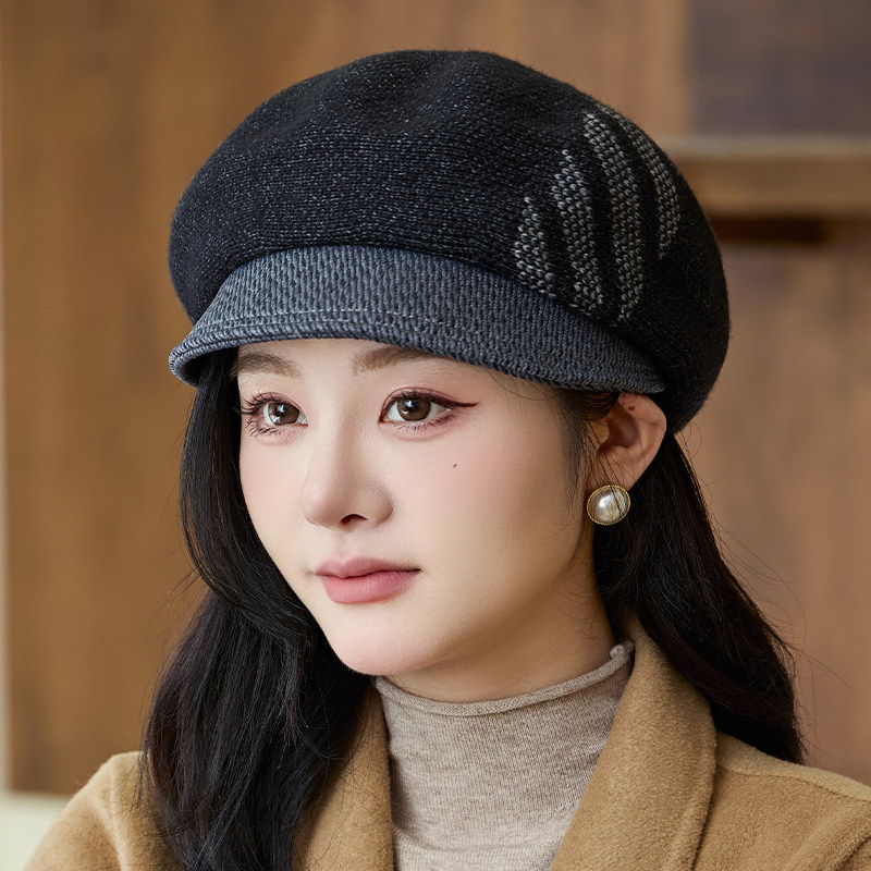 秋冬天帽子女加棉保暖妈妈鸭舌帽加厚针织帽韩版时尚贝雷帽毛线帽