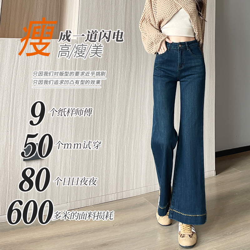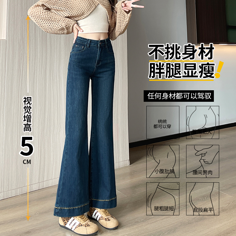 刺绣裤脚微喇牛仔裤女2025秋冬加绒加厚新款小个子八分九分喇叭裤