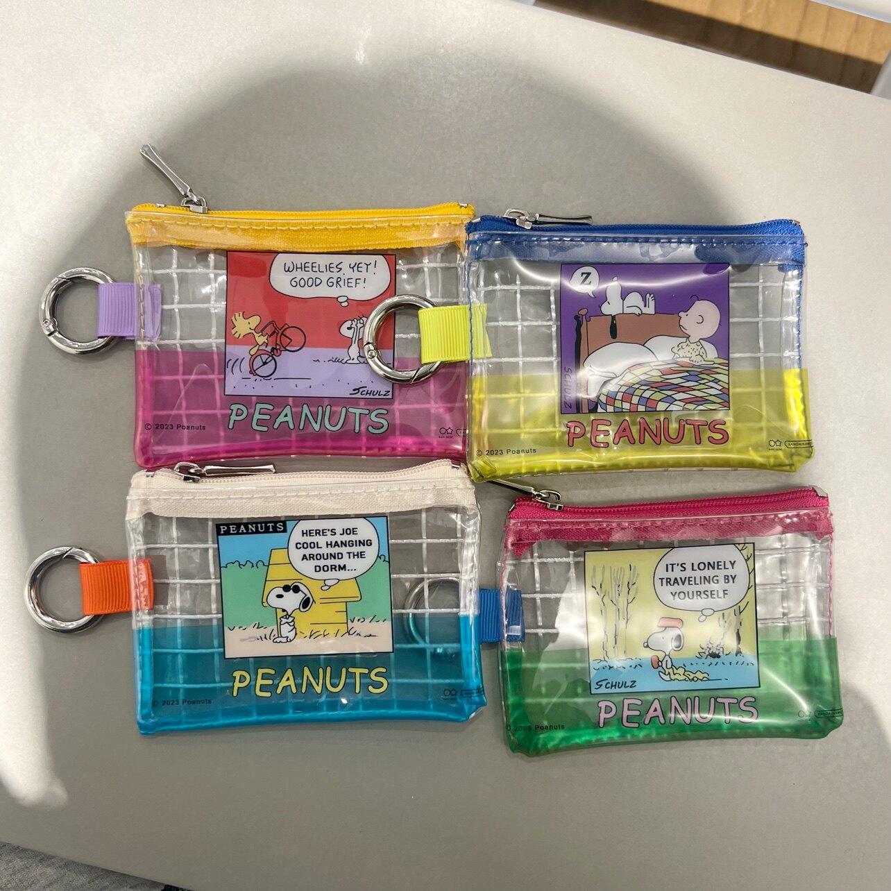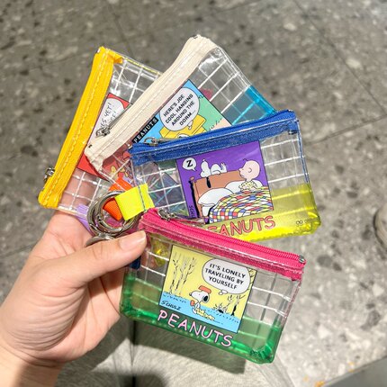 彩色网格史努比pvc零钱包迷你证件票据收纳包口红包卡包可挂包包