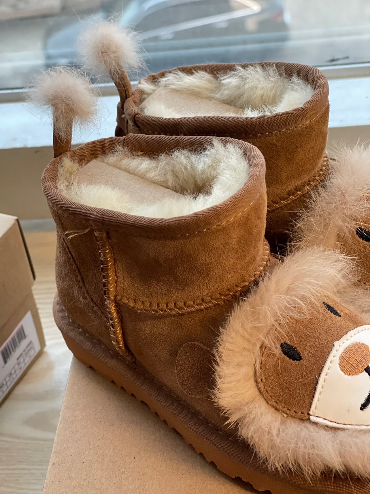 新款真皮小狮子卡通儿童雪地靴男女童棉鞋短靴加厚毛绒防滑保暖