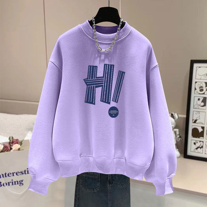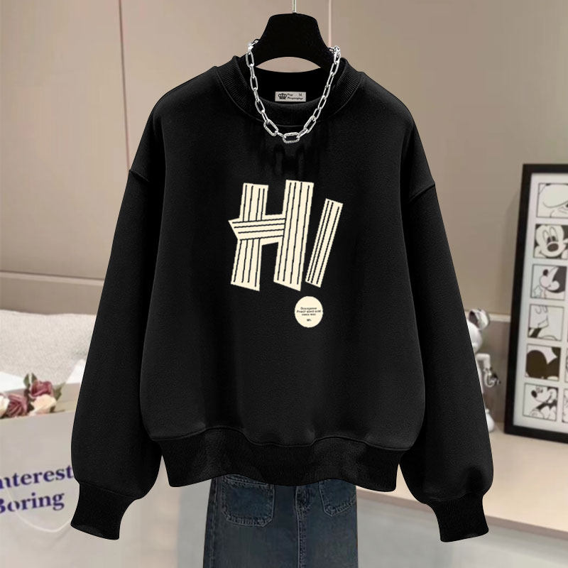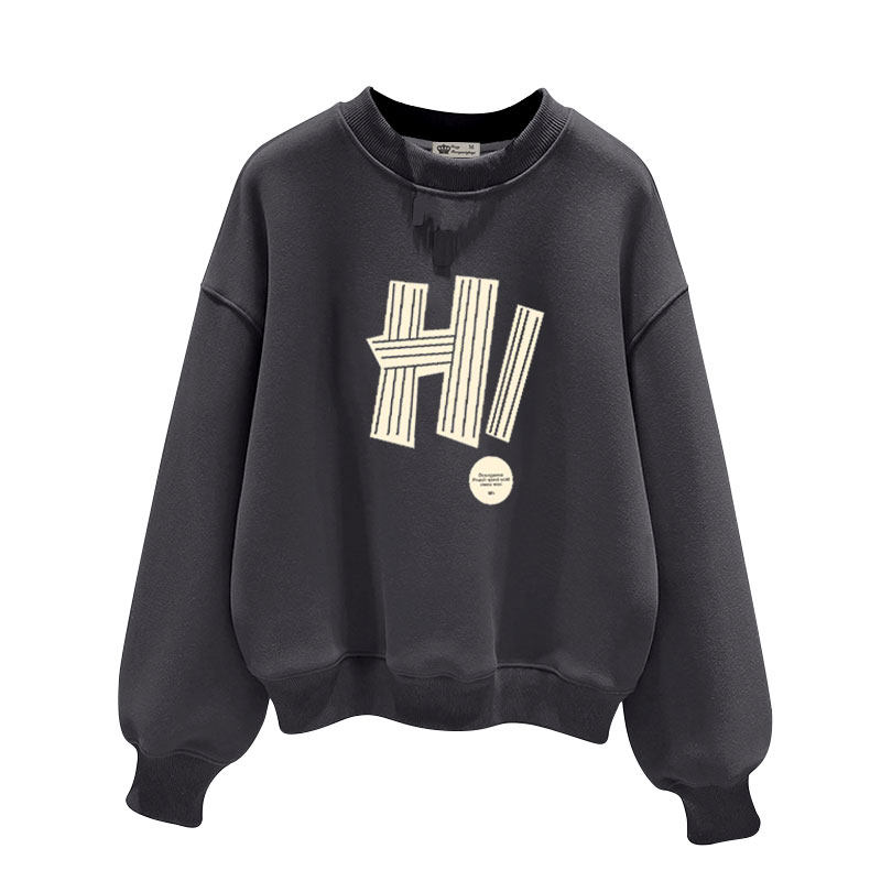 白色HI字母圆领卫衣女秋冬季加绒加厚欧货保暖百搭潮牌欧美风上衣