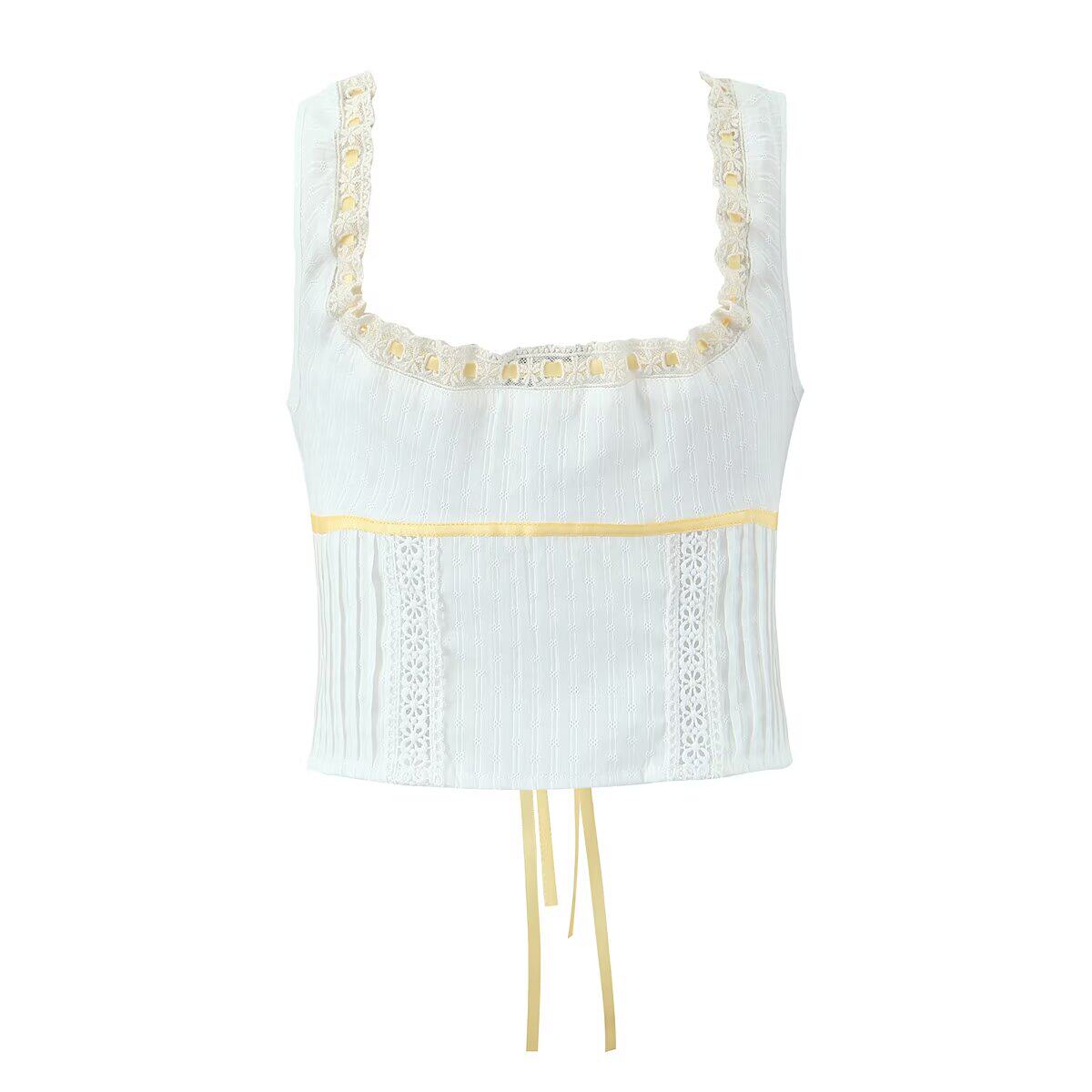 浪漫南法假日氛围感蕾丝花苞撞色绑带小吊带背心半身裙度假风套装
