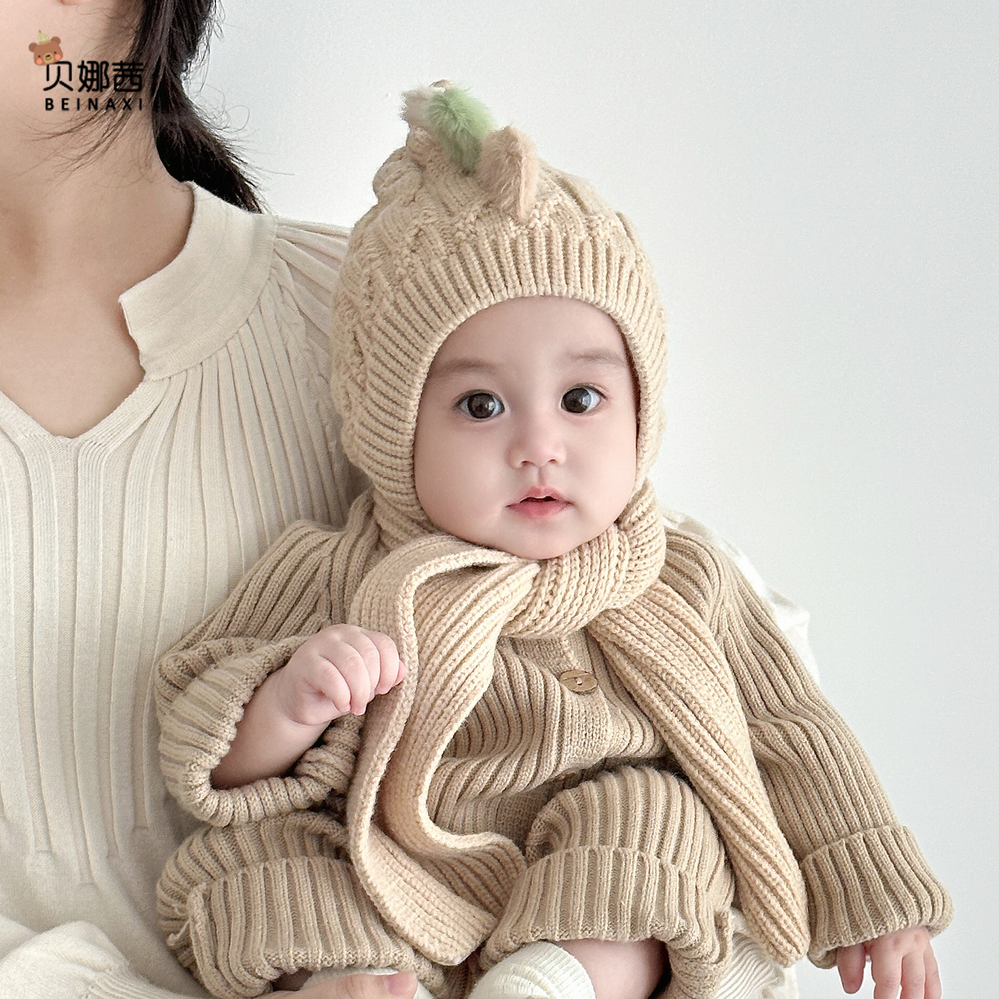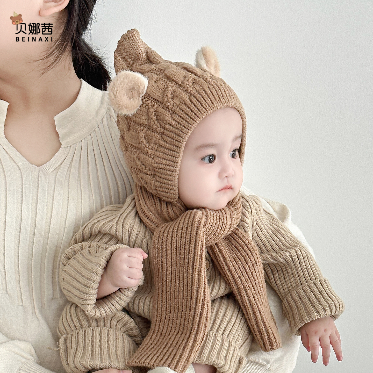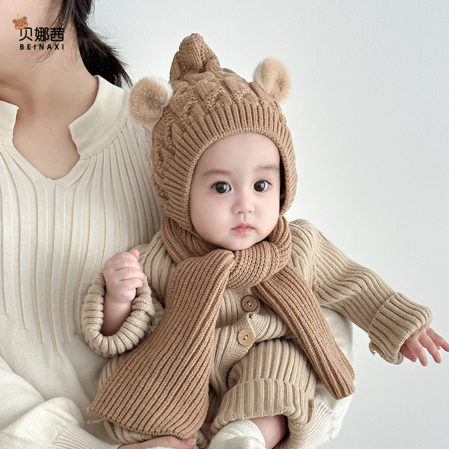 婴儿帽子秋冬季男宝宝可爱针织帽婴幼儿冬季外出毛线帽护耳帽围巾