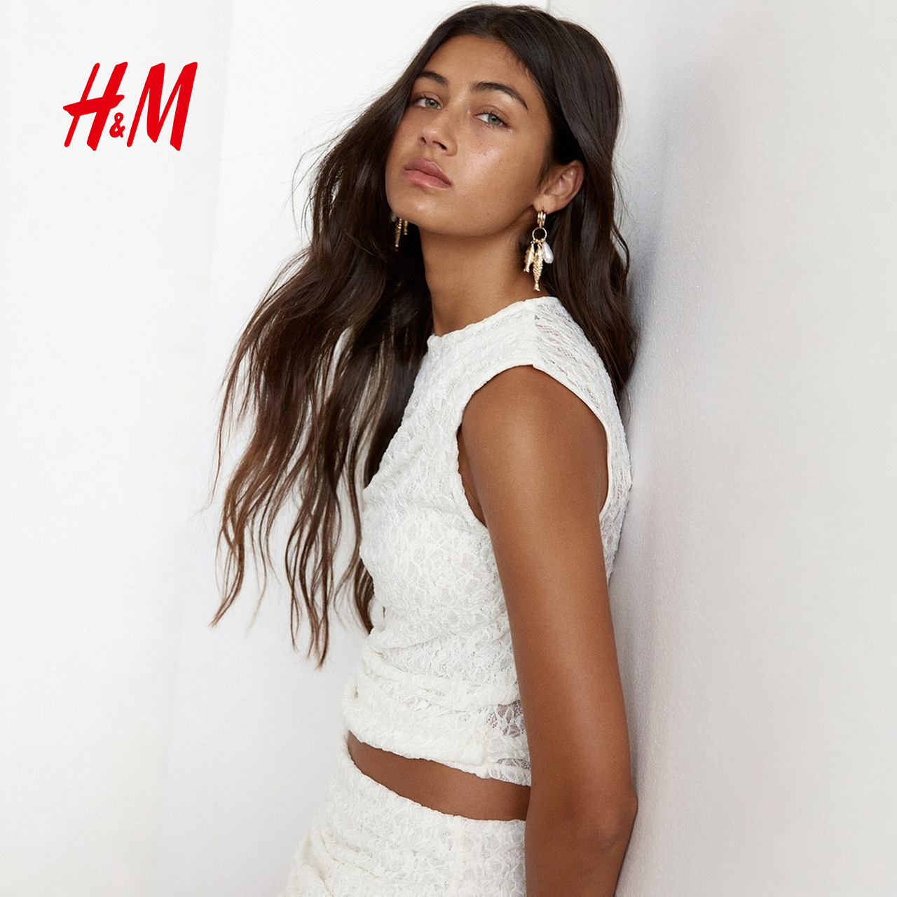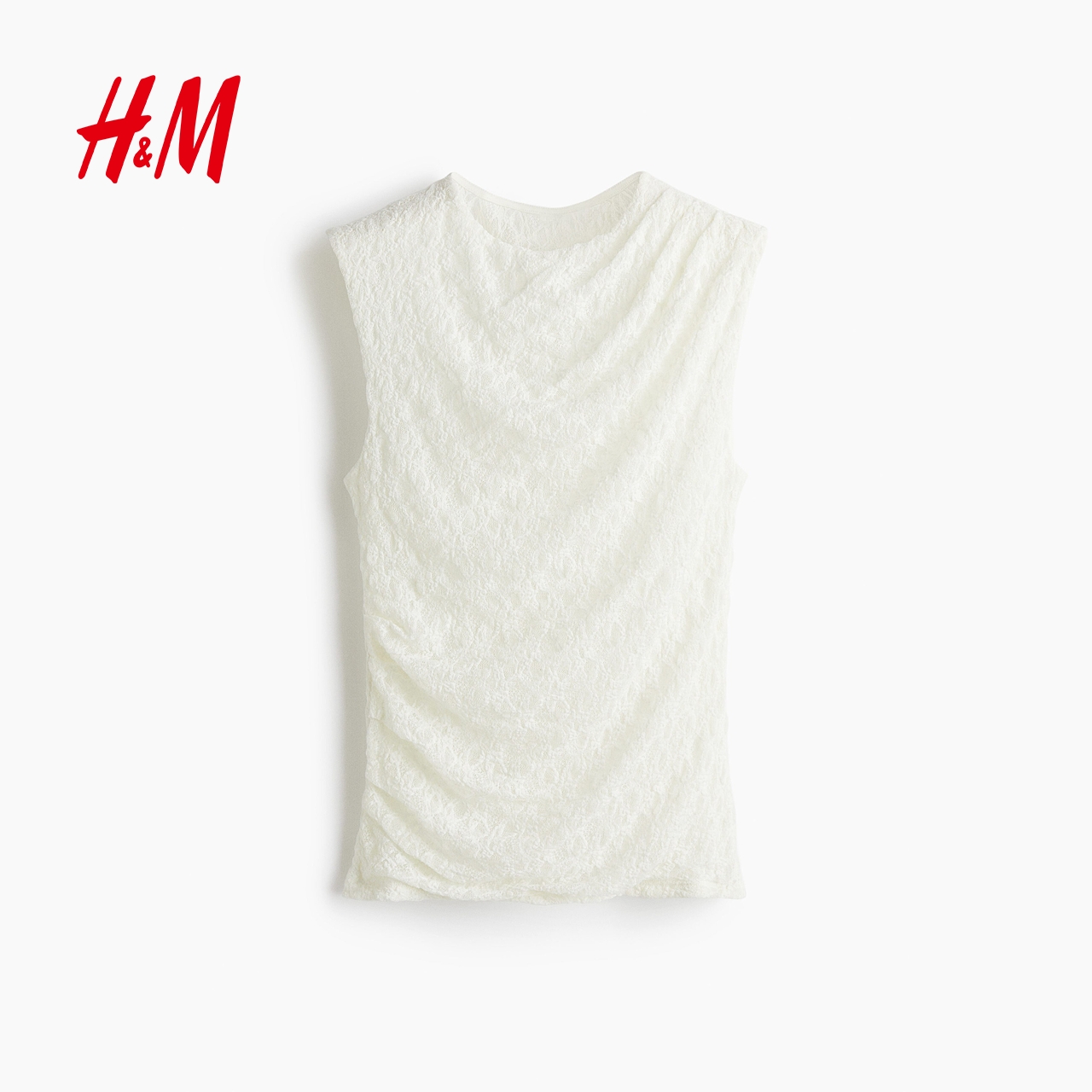 HM2025夏季新款女装时尚休闲百搭垂褶蕾丝汗布上衣1310027