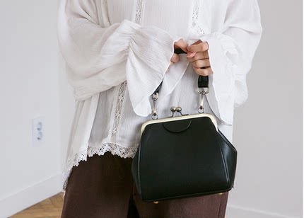 口金包黑色包包女2022新款单肩斜挎韩版简约百搭复古夹子包气质包