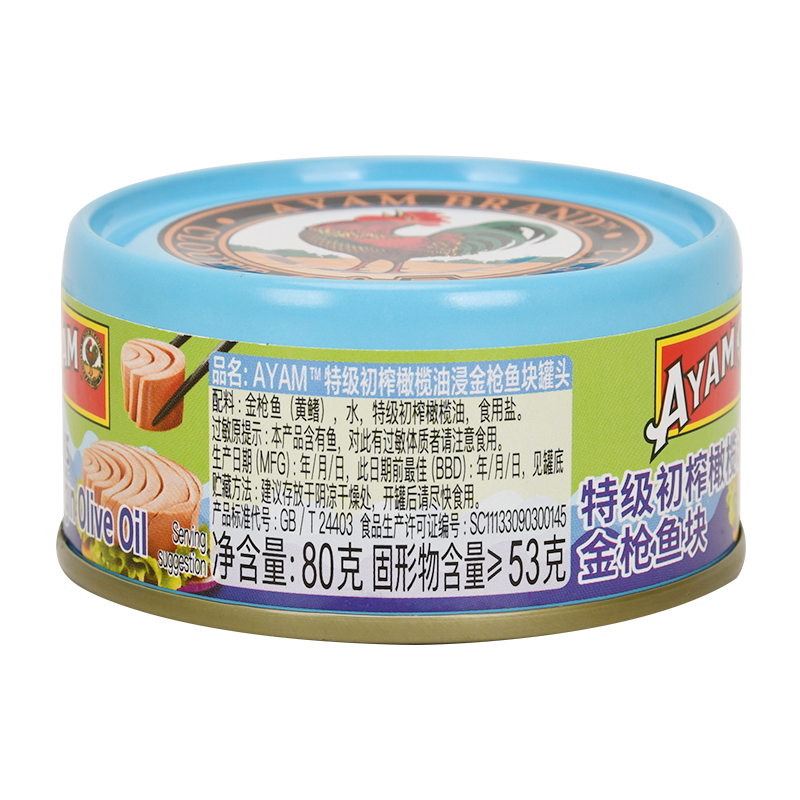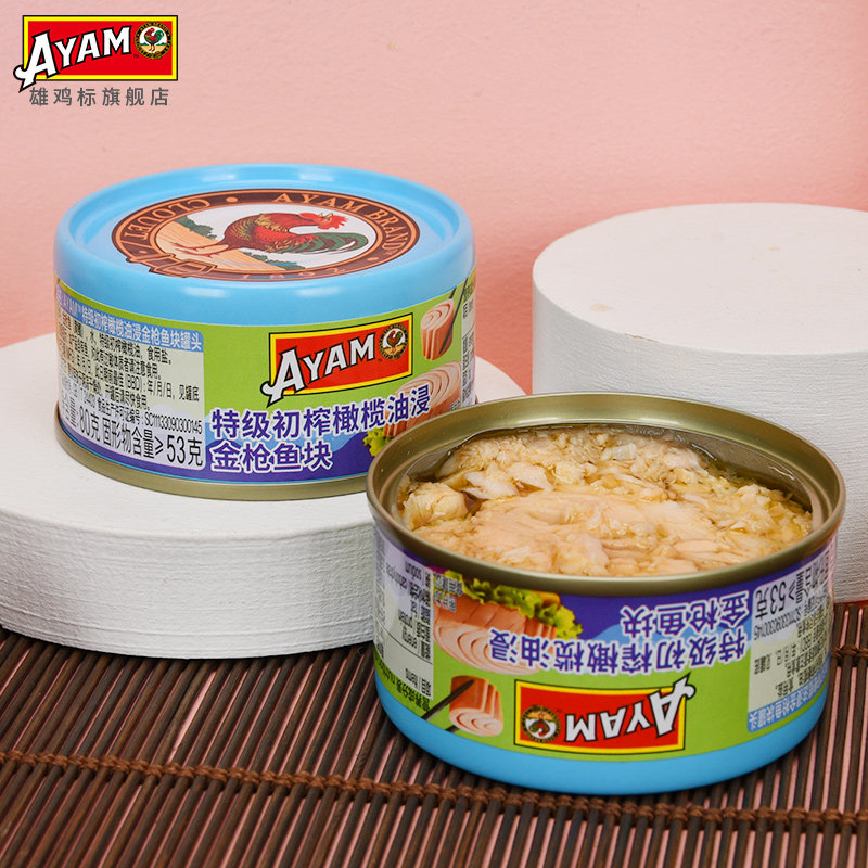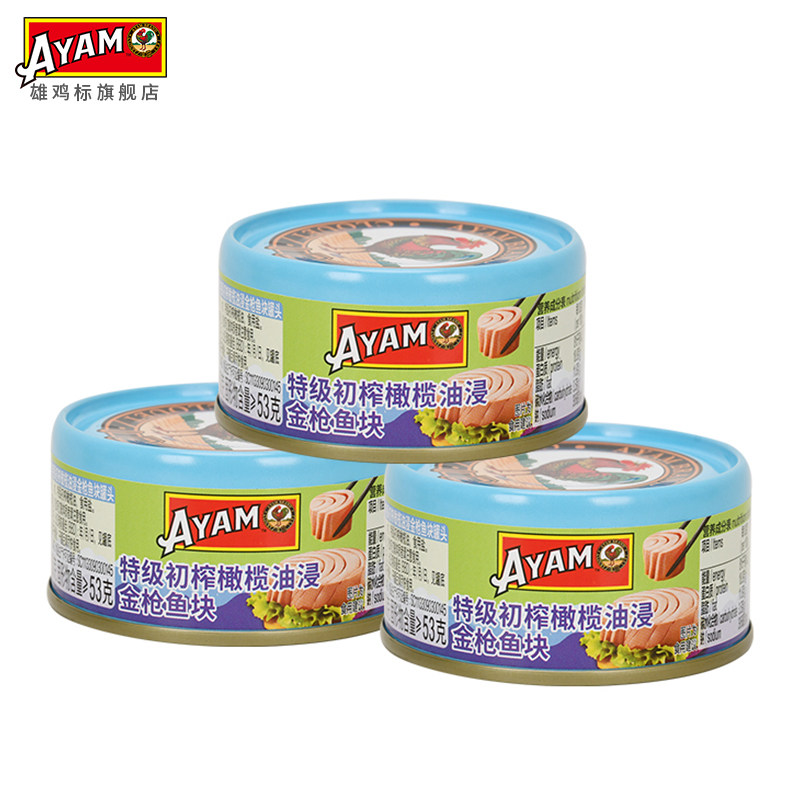 雄鸡标特级初榨橄榄油浸黄鳍金枪鱼块罐头80g*3开罐即食沙拉鱼肉