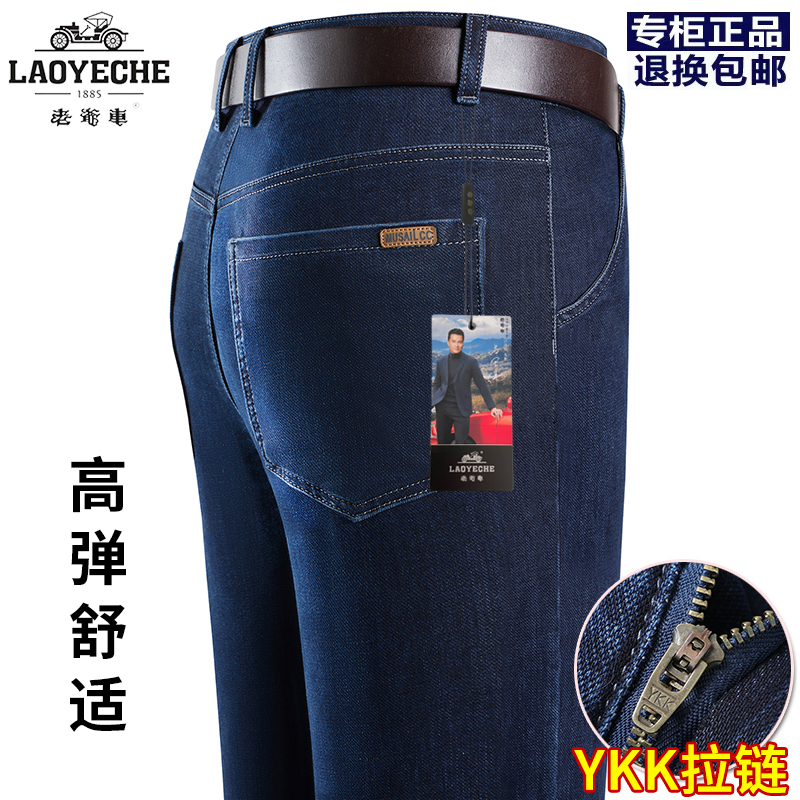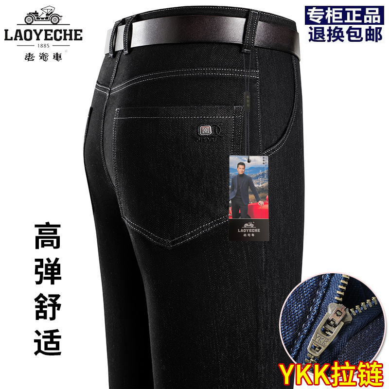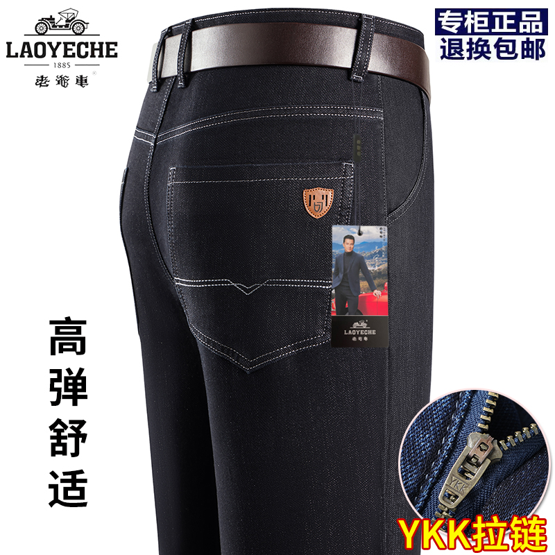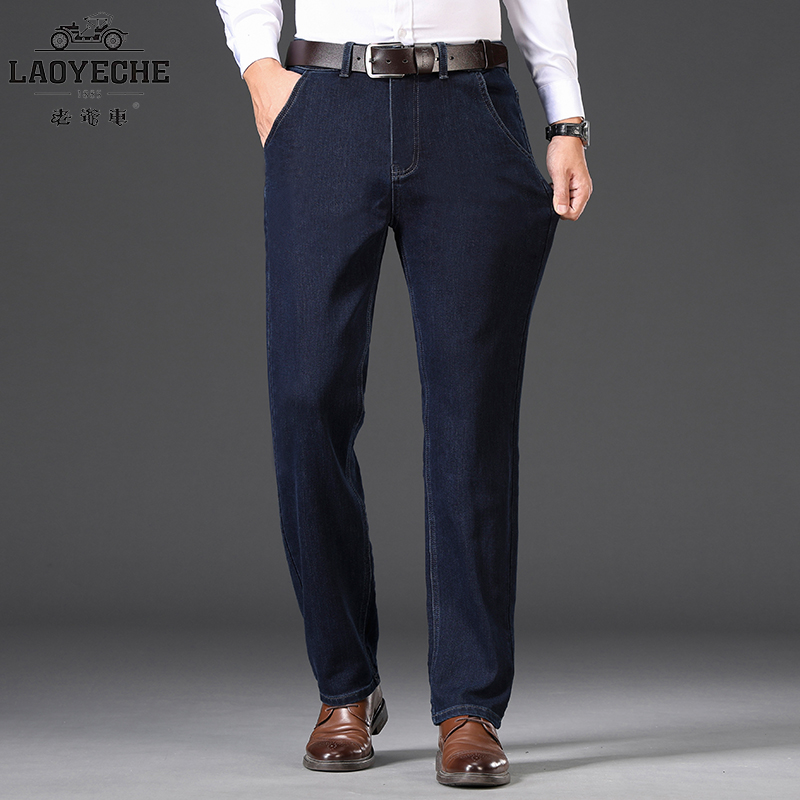 老爷车牛仔裤男秋冬厚款中年男士弹力直筒爸爸高腰商务休闲长裤子