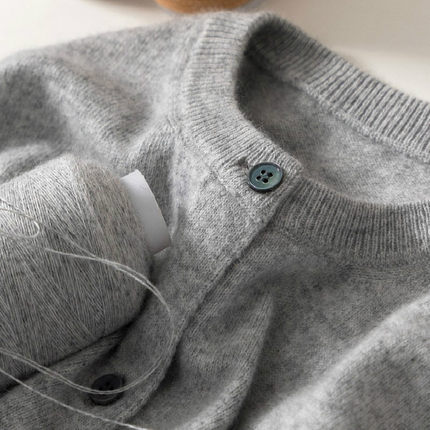 气质爆棚!定制2023秋冬新款羊绒开衫女圆领男短款毛衣外套宽松潮