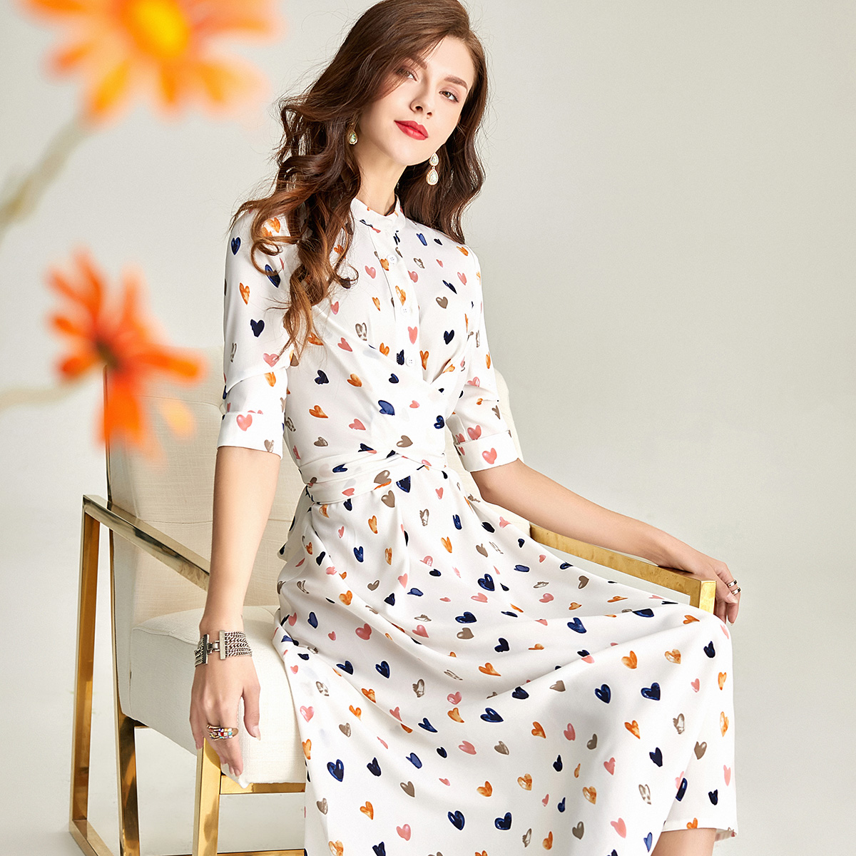 夏季优雅初恋法式白色小碎花知性衬衫连衣裙显瘦通勤a字裙桔梗裙