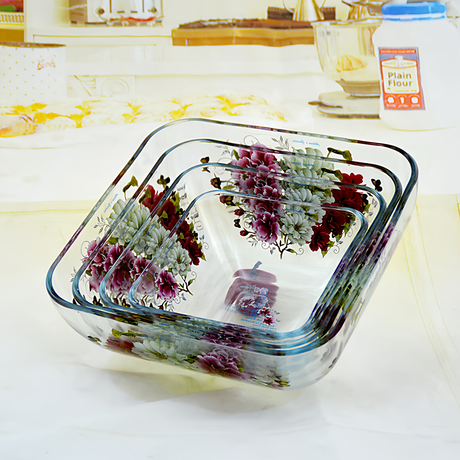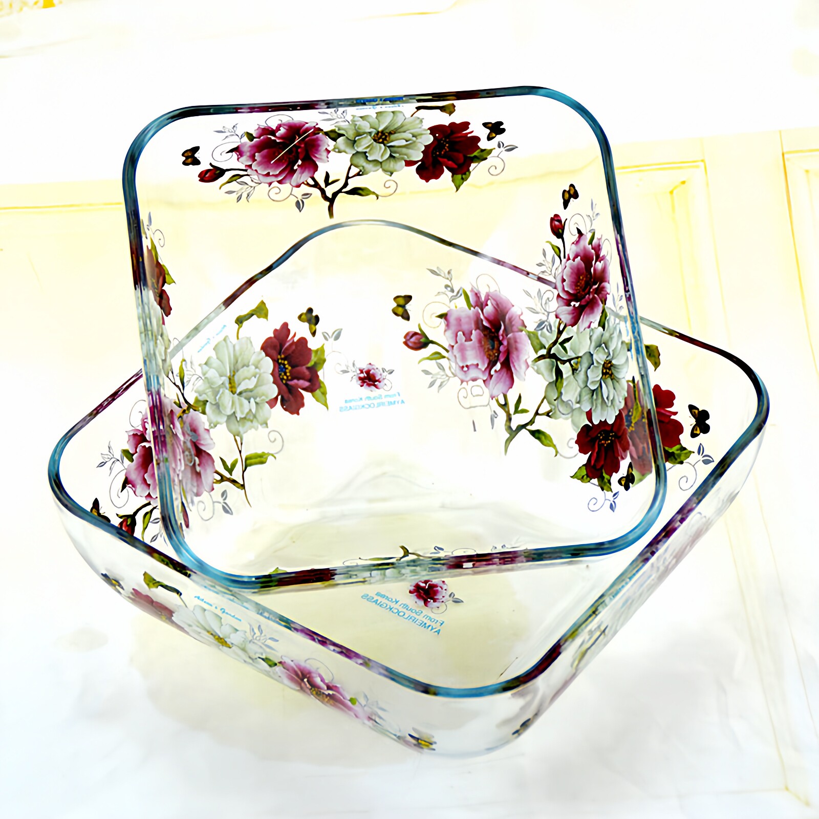 韩国玻璃盘子家用耐热餐具方形深盘汤盘水果盘沙拉碗盘凉菜盘微波